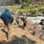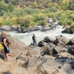 Randy and Linda decided to explore further down the rocky trail as their track will show. After chatting with some of the raft pilots, the rest of us headed back up the trail to the cars; watching more rafts shoot the rapids as we went.
