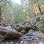 We arrived by 9:30 following our 8:00 AM start. The sky over the canyon was mostly blue with good to moderate air and a morning temp of 64 degrees. The trail is on the shady side of the river and you park off the road just before the bridge.