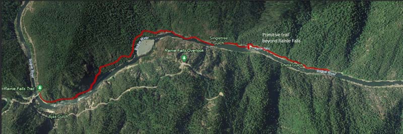 A while after lunch, we explored the trail going down river past the Falls and found some beaches where the pilots put in their rafts and pick up families for a day’s adventure on the Lower Rogue River.