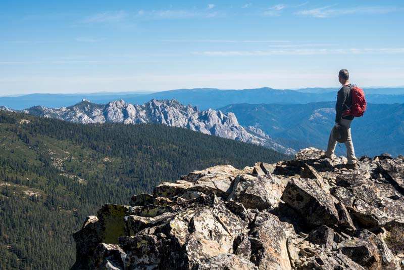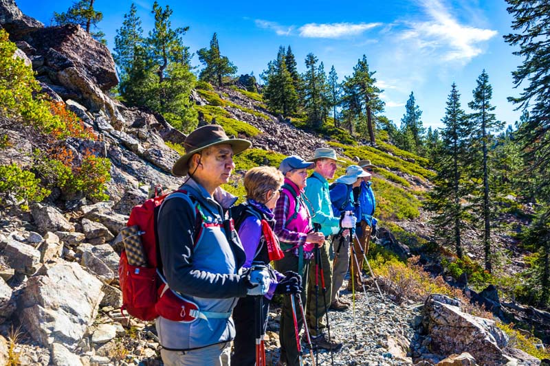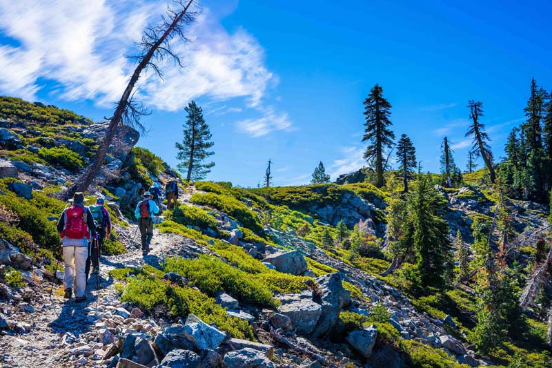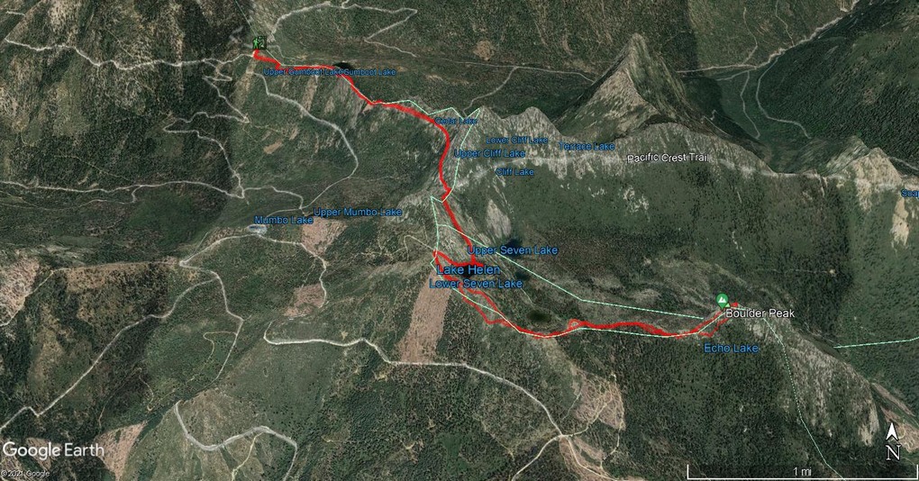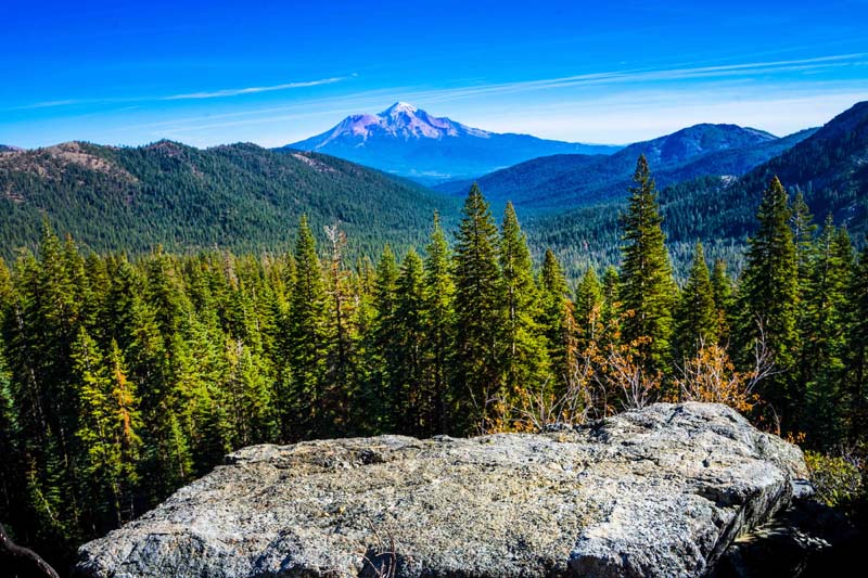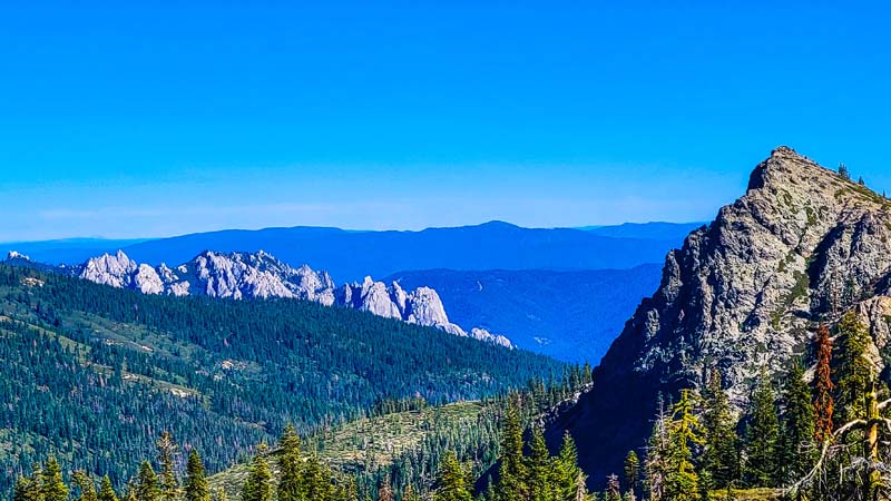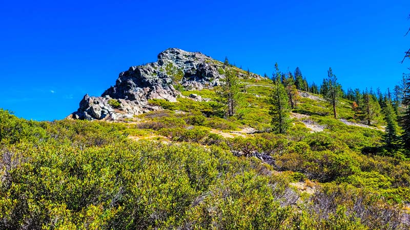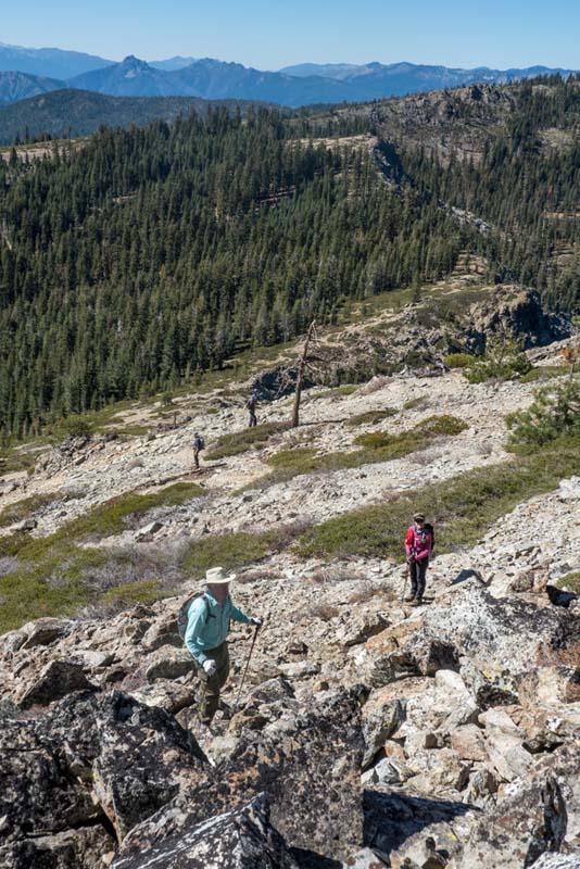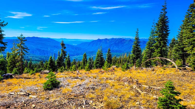 Seven of us headed south to Gumboot Saddle for a hike up to Boulder Peak. This is easily in my top 5 hikes within the Wednesday Hike Portfolio. The views start within a quarter mile of the start and don’t stop until you’re almost back to the cars. Shasta is up close a personal. The Crags arrive along with Mt. Lassen in the distance, plus many lakes are visible from the ridges. Yes, it is also one of the tougher hikes, with some serious uphill bushwhacking over big boulders, along with many manzanita bushes in the way, but the effort is worth the views.
