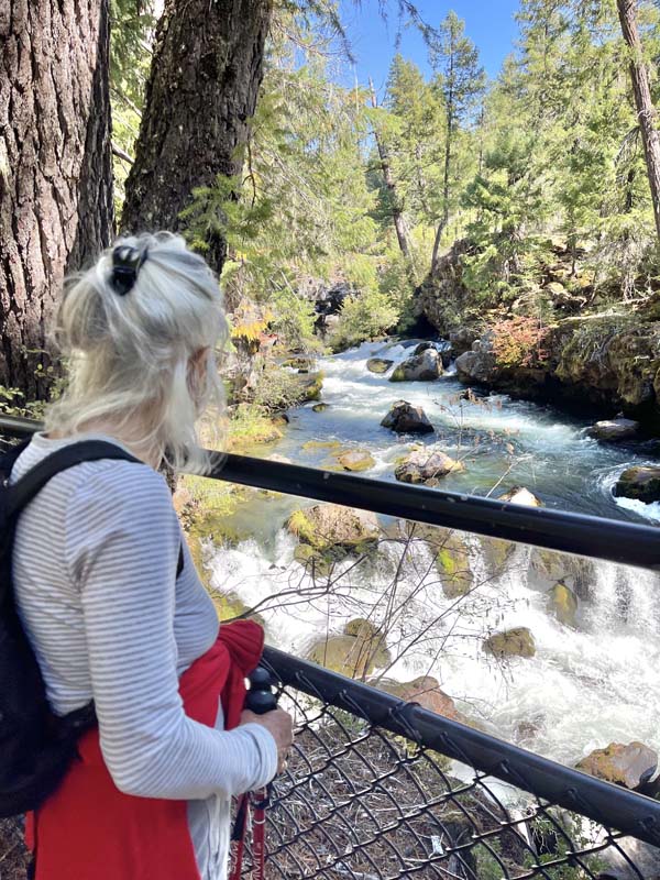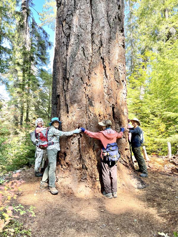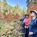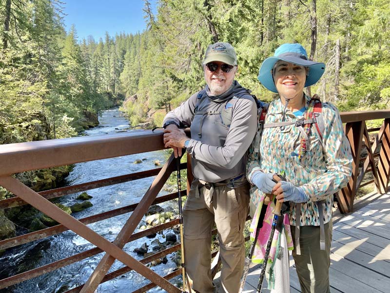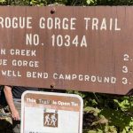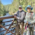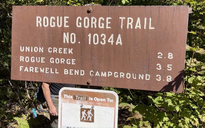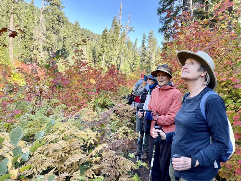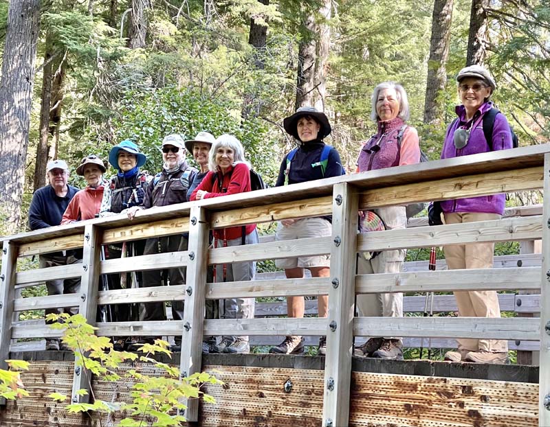 en of us enjoyed magnificent fall colors under a crystal blue sky. We hiked alongside Union Creek, passing its confluence with the Rogue River. Crossing the bridge to nowhere (coined by AHG) we took the trail on the other side of the Rogue River, climbing up the hillside through old-growth Douglass Fir and down to Natural Bridge for lunch. Returning on the other side of the river, we tracked the “lollypop” version of this familiar hike. We’d ‘clocked’ 6.7 miles with 400’ net elevation gain.