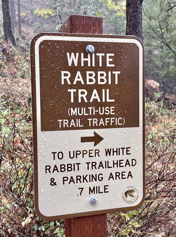 Snow was predicted for the originally scheduled Brown Mountain trail hike, so we elected to hike locally in the Ashland Watershed. Five of us parked cars on Locust Street and headed off on the Oredson Todd Woods Lower Trail. Then, we took the Clay Creek Loop and headed up the Mike Uhtoff trail to the top of the hill.