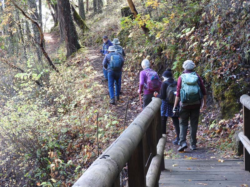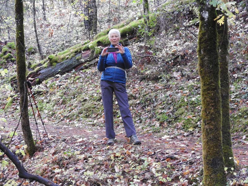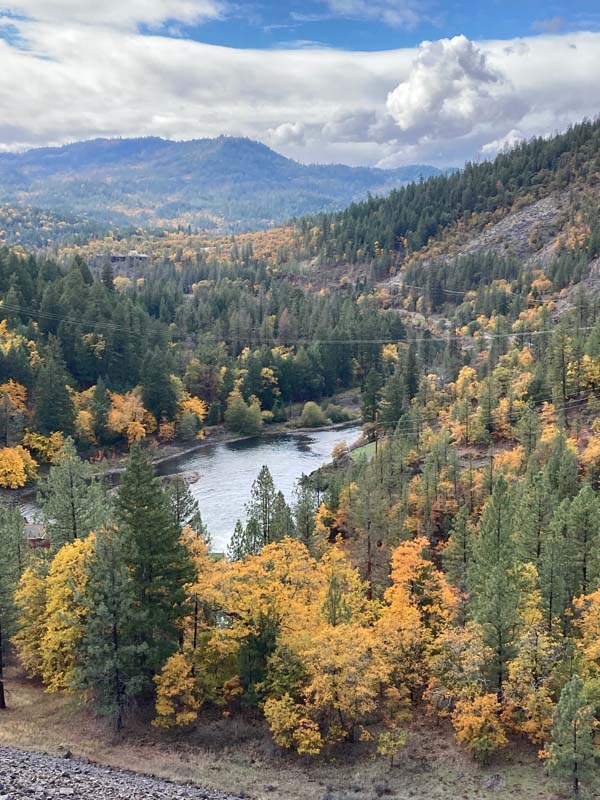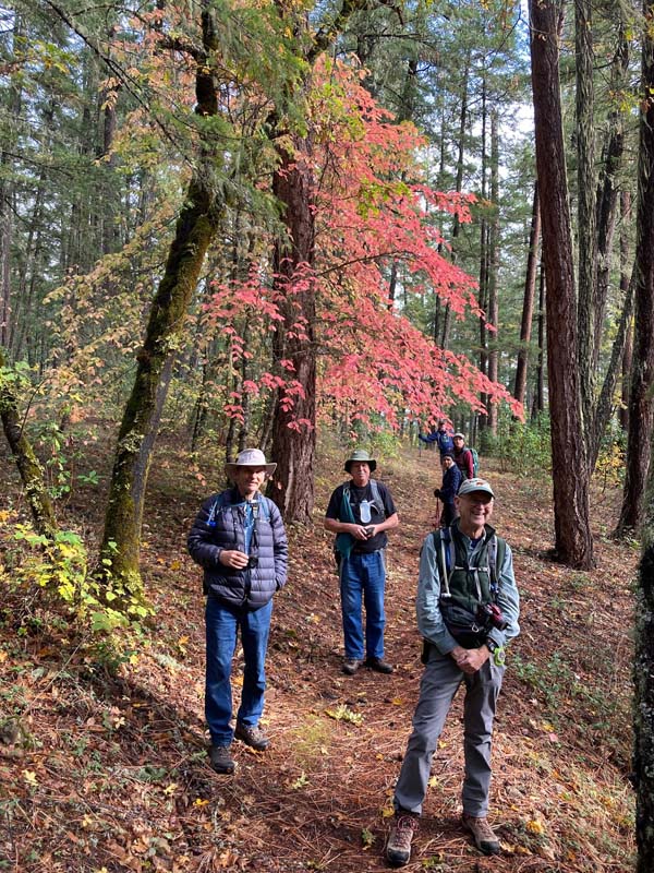 Note: Liz showed us another bypass from Highway 62 right after the usual 4 mile bypass. When you come back to 62 make a left at the first light onto Leigh Way then right onto Agate Rd. You drive straight for several miles through farmlands and horse estates and a winery with lots of Fall Colors before returning to 62 through Sam’s Valley. A very nice drive with little traffic.