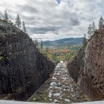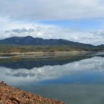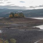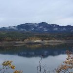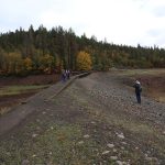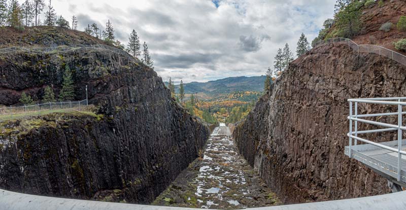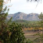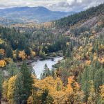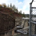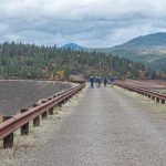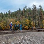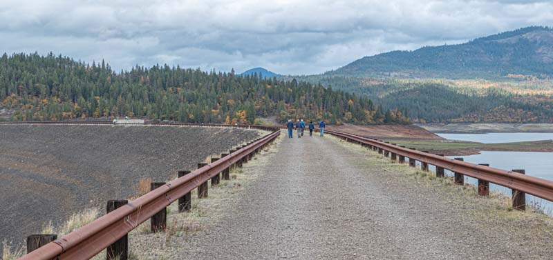 After lunch, we drove a short way back towards the dam parking area for our walk across the dam. We had great views of the lake and surrounding peaks (Flounce Rock, Eye of the Needle, and Viewpoint Mike) and golden trees mixed with evergreens on the down river side of the dam.