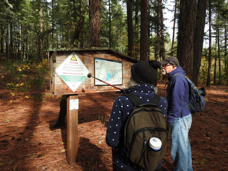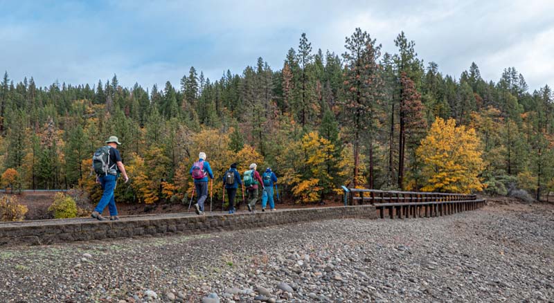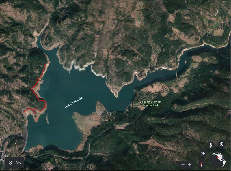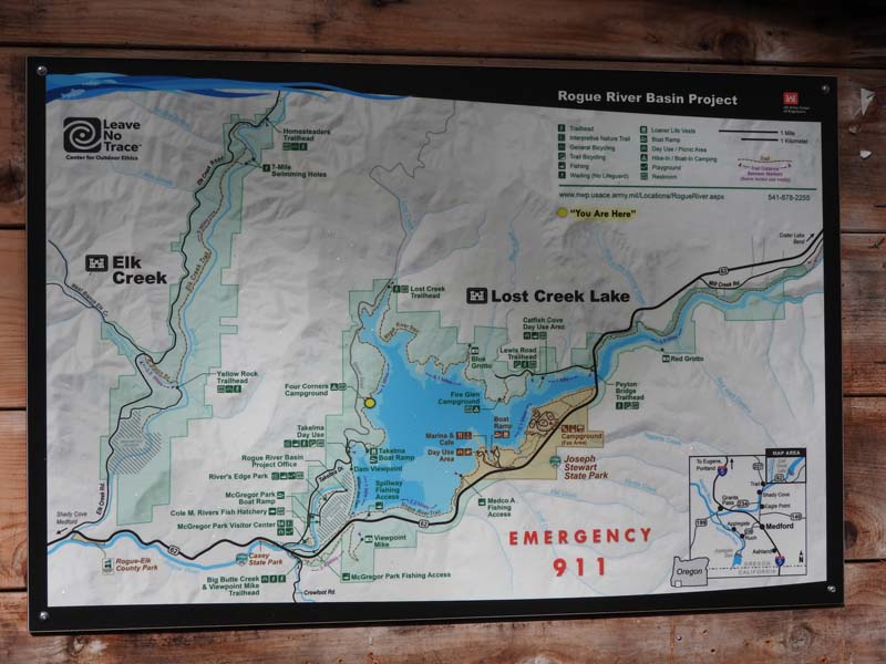 So, while listening to the Beatles channel, I found myself driving up Highway 62 towards Lost Creek Lake. The AHG has done at least a half dozen hikes around the lake so it was a challenge to come up with something new. While studying the posted map I came up with an idea for a new Combo-hike. First an out and back from the Takelma Day Use area along the Rogue River Trail and then the same on the William L. Jess Dam.