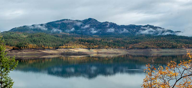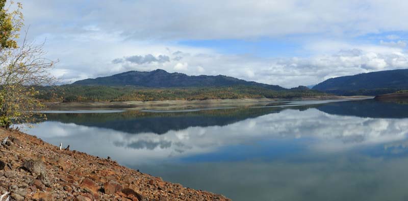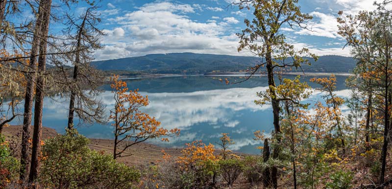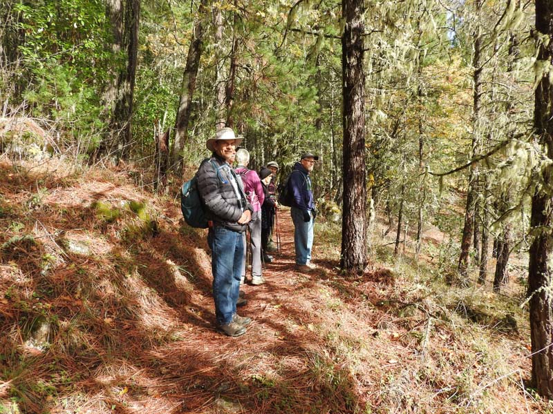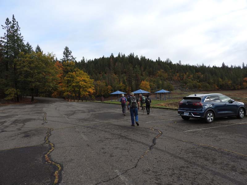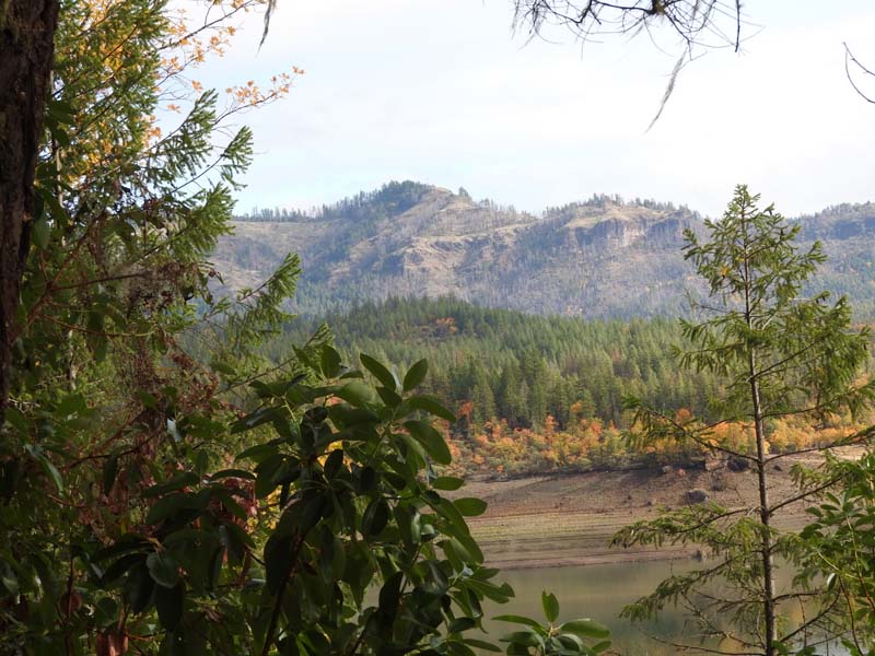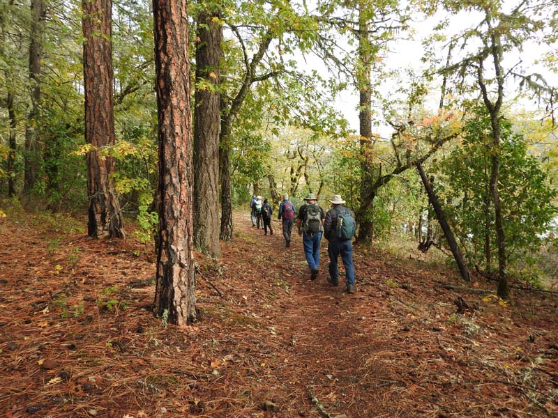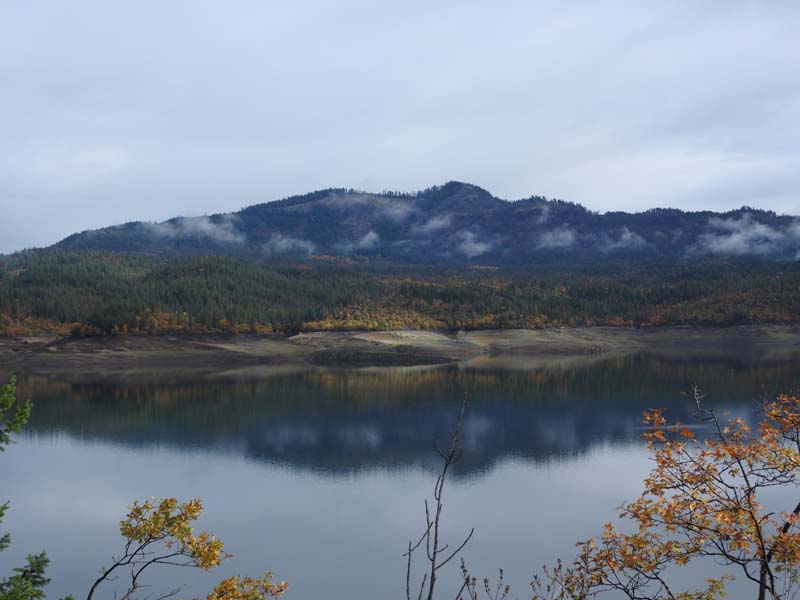 We started out at 10:15 and hiked for an hour though Oak Woodlands along the shoreline with great views of the calm lake reflecting brilliant Fall colors. We arrived back at the TH at 12:15 for lunch at one of the three canopy covered picnic tables.
