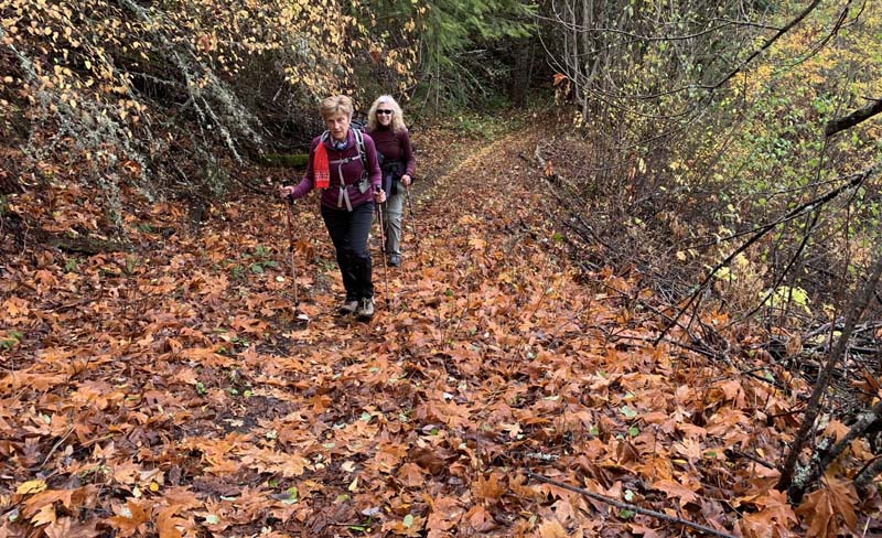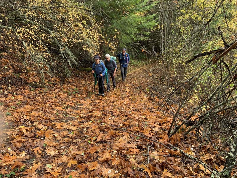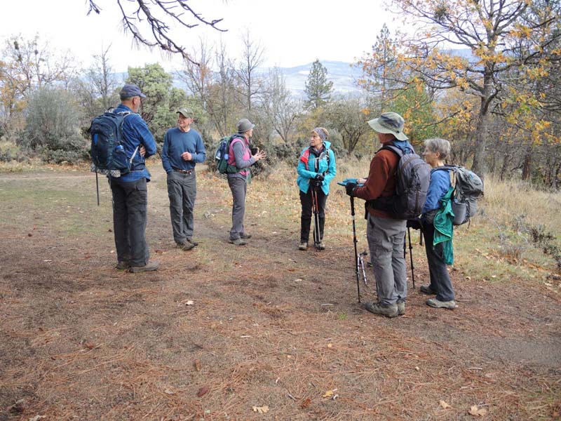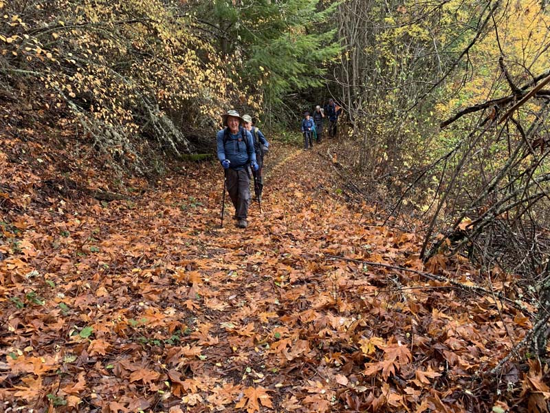 P.S. One of this leader’s key objectives, other than no slips and spills, was to not do an in and out hike; instead, to cover as much new trail in both directions. We would have accomplished this, except for the last left hand turn where two unnamed ladies walked straight downhill missing the turn and resulting in about a mile of repeat section. However, there was a lot of chatting by all, and we all (I think) had a great time.