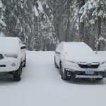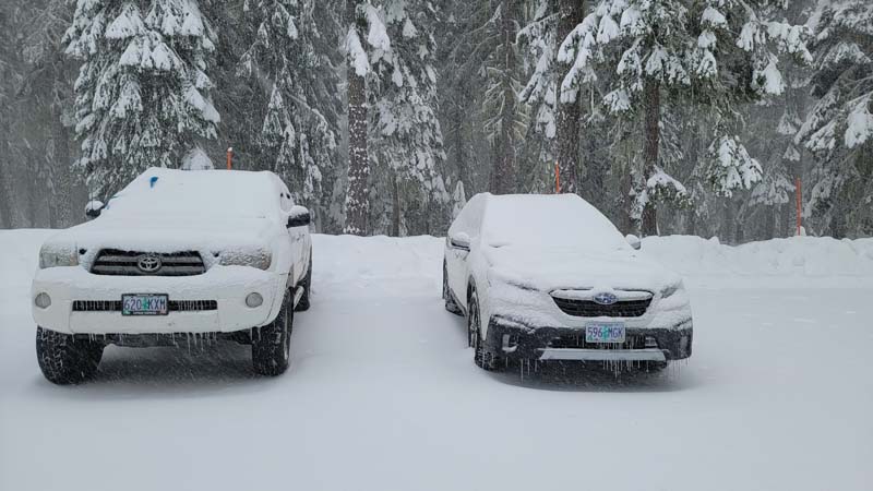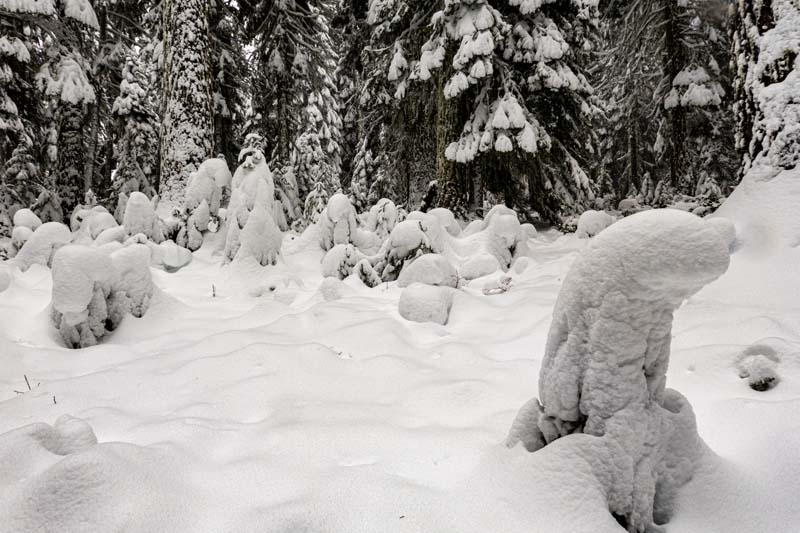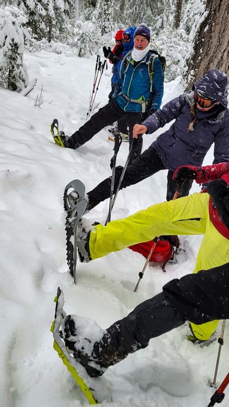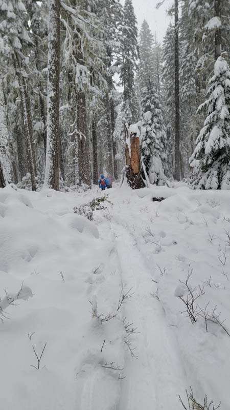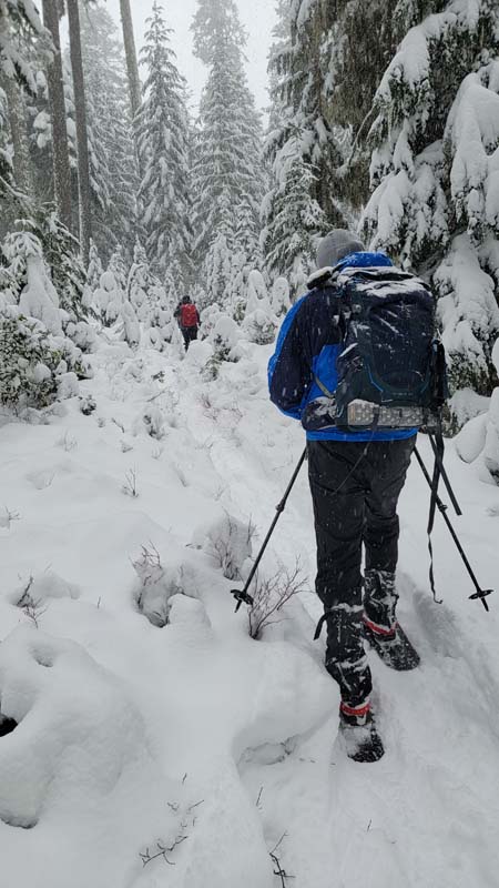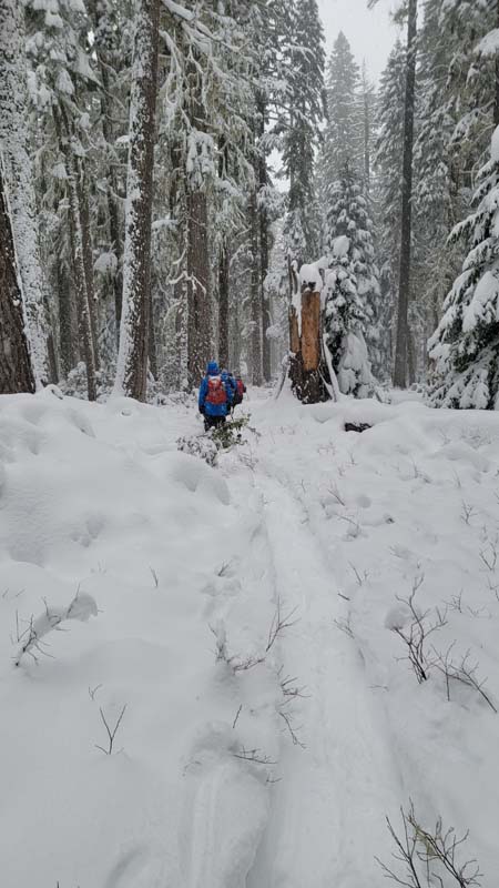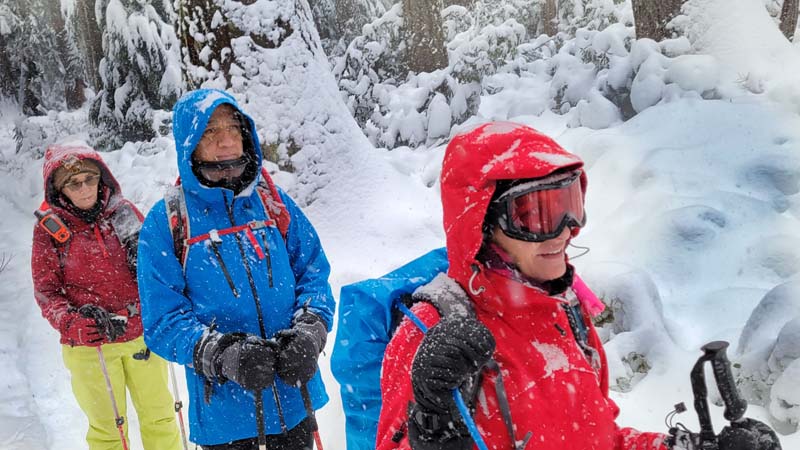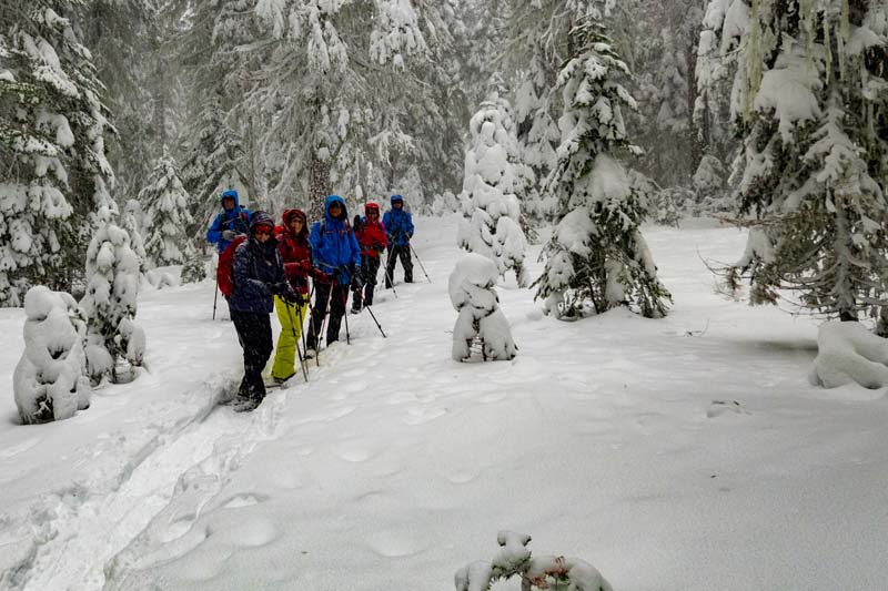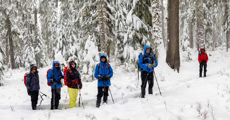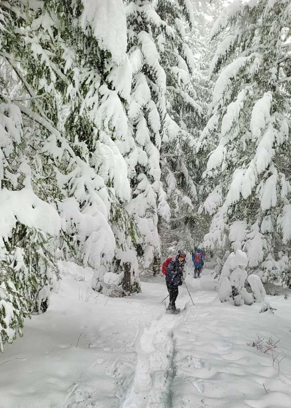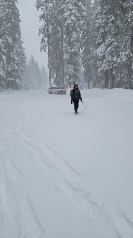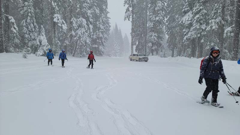This turned out to be one of the best snowshoe hikes many of us had experienced. It was only 4.5 miles long and relatively flat, but the perfect first snowshoe event of the year. Driving home was also interesting. By then the storm was in full gear. There was lots of snow in the air and on the road, so we were all glad to get back to Ashland.