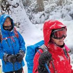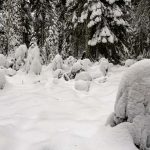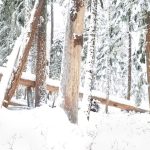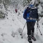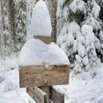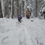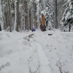We then headed to do a small loop towards Brown Mountain and back to the cars. As seen in the group picture, it started to really snow. A bit later the wind decided to join in the fun. By the time we had reached the cars we had been blown around and the trees were trying to snow bomb us as we walked under the swaying 100 foot trees.