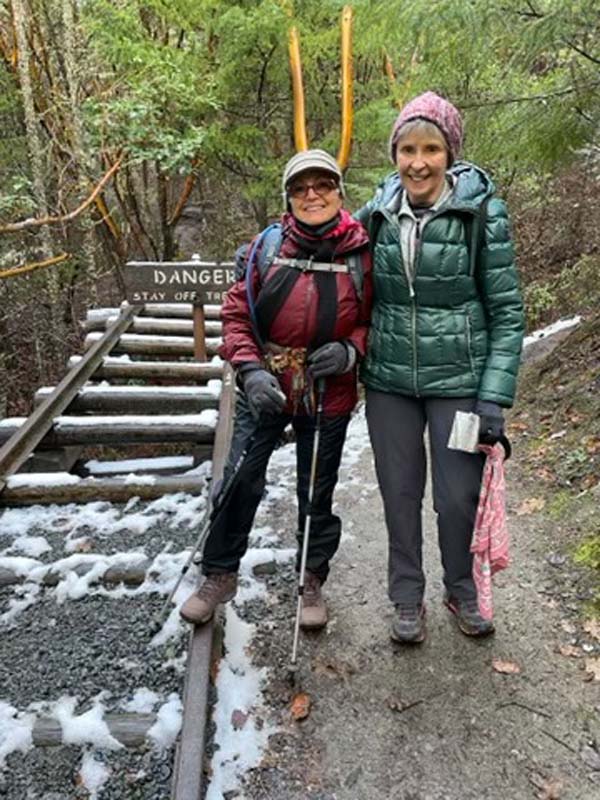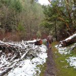 Best laid plans turned into Better trod paths in Jacksonville’s Forest Park, which is full of 25 trails. We’d planned to drive to Parking Lot 3 and hike the Grotto Trail. Route to P3 was closed and the road was in rough condition. Snow had accumulated in the higher areas.