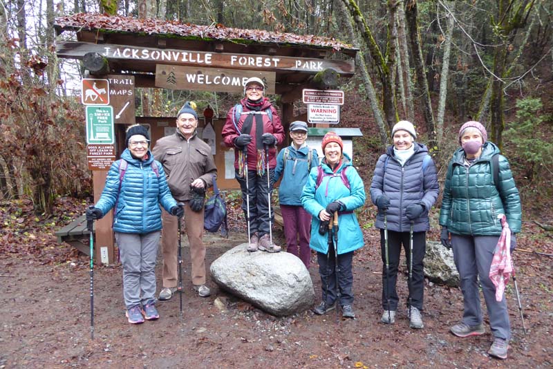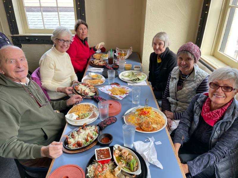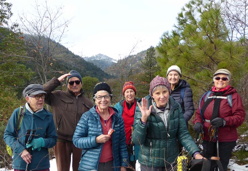 Finally, we celebrated the beautiful day for hiking, mostly clear skies and sunshine (a welcome break from so much fog recently). Following our hike, six of us enjoyed a holiday lunch at La Fiesta in Jacksonville town near Britt.