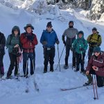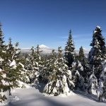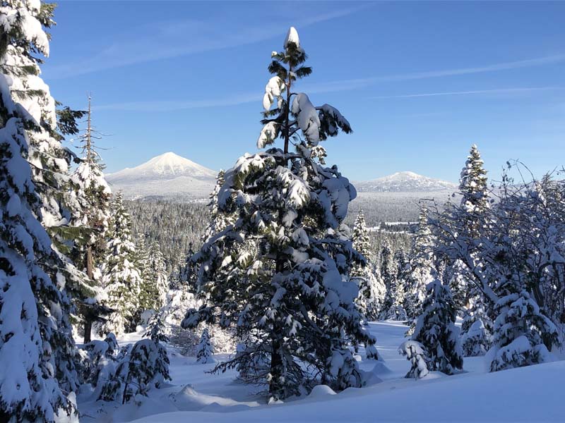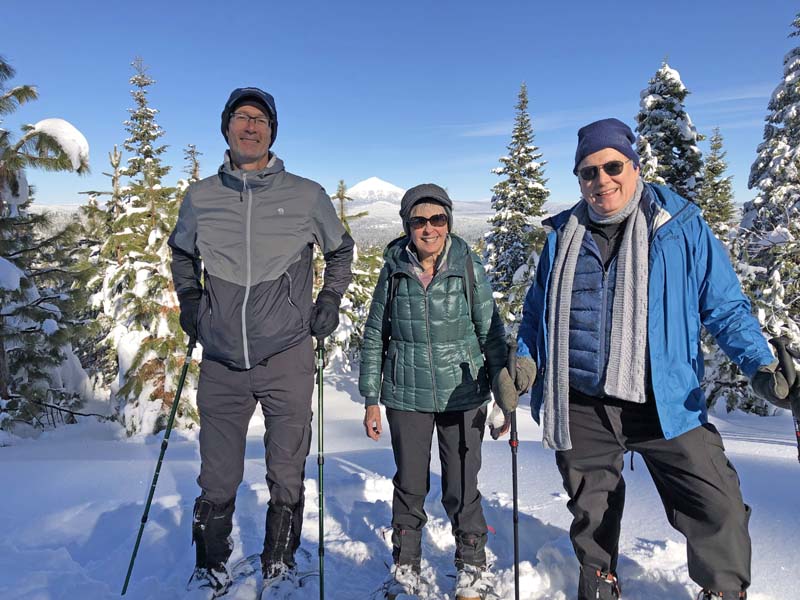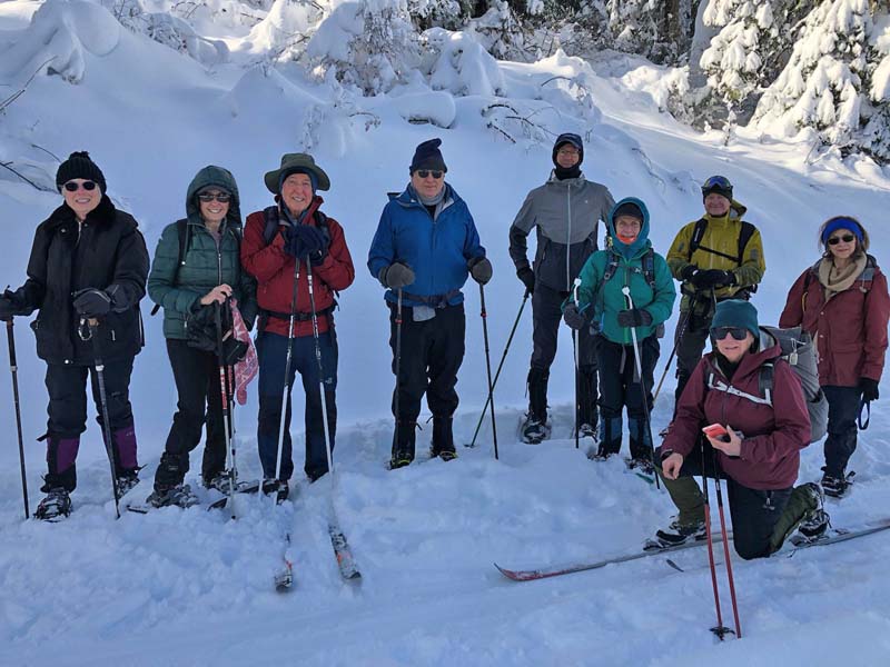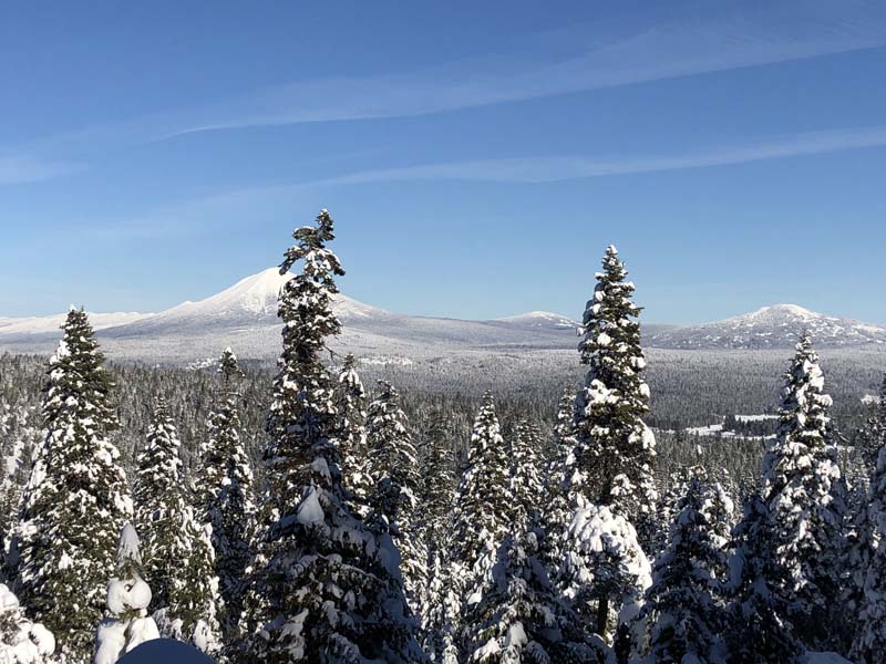 On Saturday, New Year’s Day 2022, our group assembled again at 10 AM at Rite Aid, with some additions for a group of 8. We drove up DIM to the Buck Prairie I Sno-Park, cautiously. Buck Prairie on this day provided ideal snow conditions and the most beautiful views ever. The sky was crystal clear, affording long views of the mountain ranges to the east with Mt. McLoughlin, Brown Mountain, and even the far-off tip of Mt. Thielson in the Oregon High Cascades.