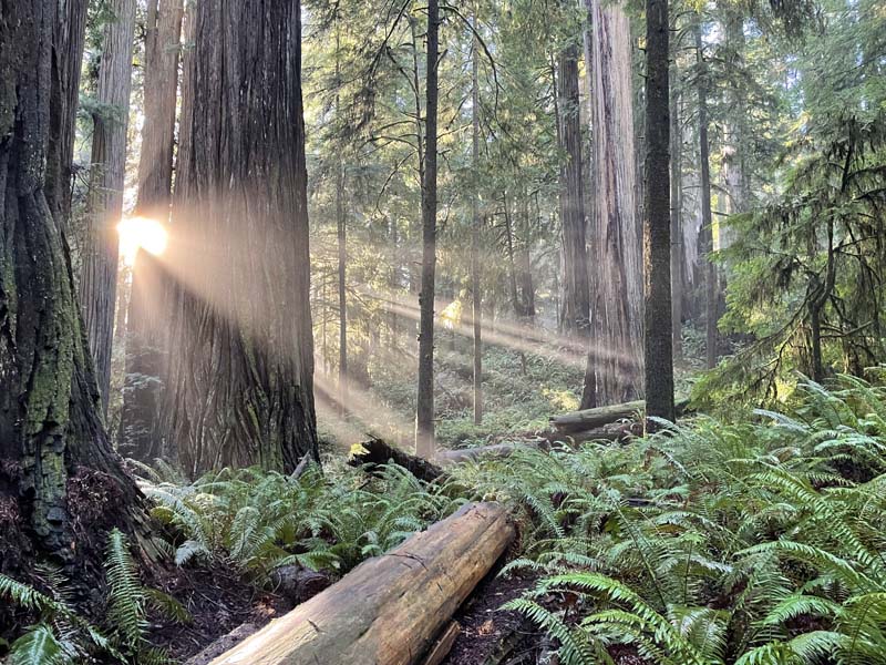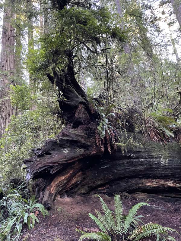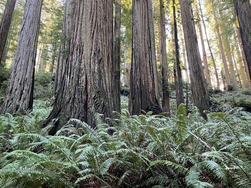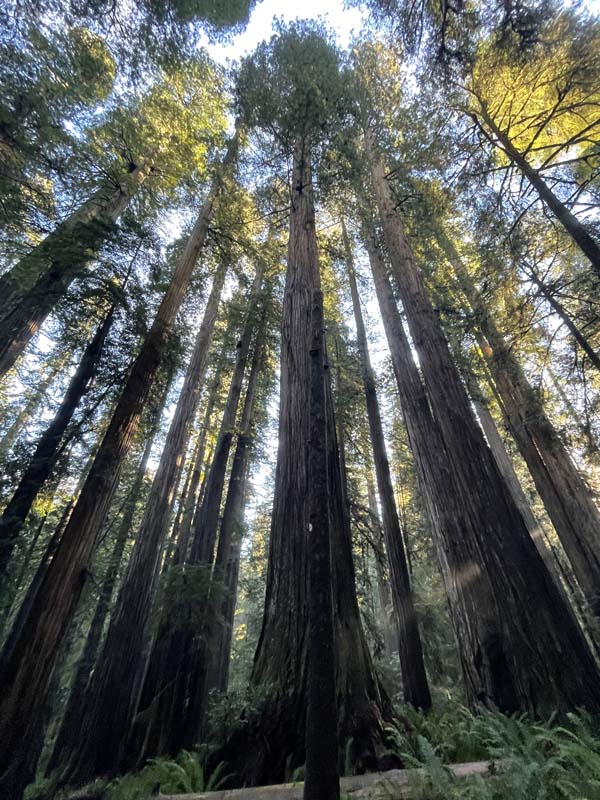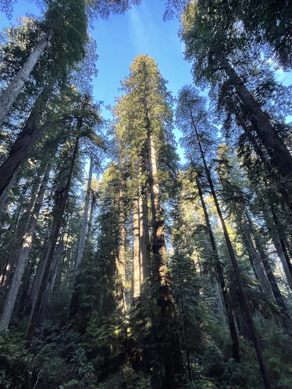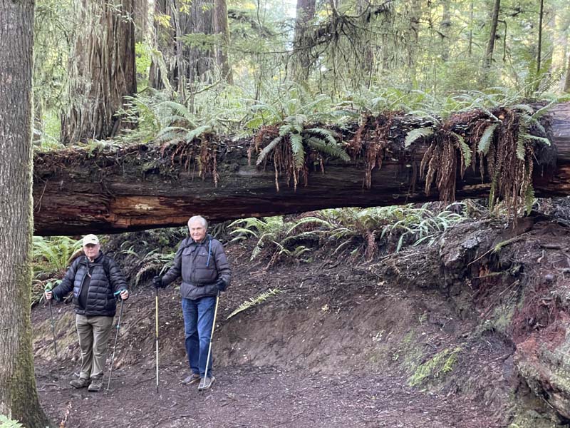 Friday morning we had an early breakfast and headed for the Boy Scout Trail in the sun. The redwoods were as majestic as ever and we did about 1 1/2 miles before running into deep mud we could not avoid. So we turned back early after taking some great pictures and made our way for lunch at Taylors in Cave Junction. A great overnight.