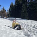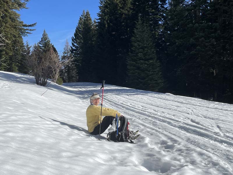 After our break in the sun, Sunny demonstrated her unique approach to getting up from a sitting position on snowshoes. The 5th try was brilliant and up she went.