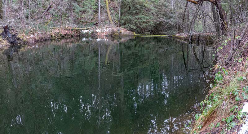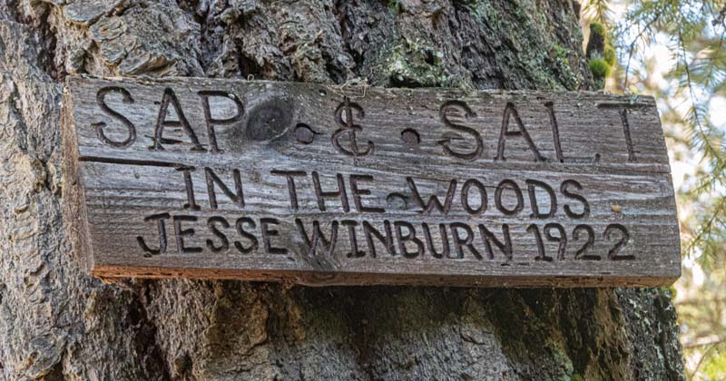 You hike about 2.5 miles up the old road (which has a pretty foot path down the middle) until you come to another creek flowing into the West Fork of Ashland Creek from the right. This is Weasel Creek. If you’re as lucky as me you’ll look up and see the sign for “Sap & Salt in the Woods” 1922. That sign tells you that you’ve reached the beginning of Jesse Winburn’s Resort Camp.