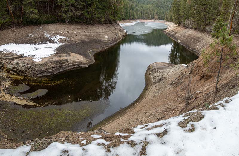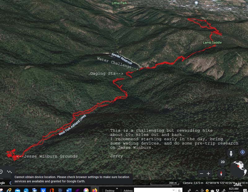 We started at the Wite Rabbit TH off Ashland Loop Road and took the Caterpillar Trail over to Lamb Saddle. From there we headed down the 0.8 mile trail to Reeder. The bottom of the trail follows the East Fork of Ashland Creek down to the reservoir. Then we crossed the icy bridge (closed to vehicles but not foot traffic) and followed the service road around to the left towards the West Fork of Ashland Creek.