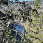 We escaped the fog of Ashland and found ourselves in brilliant sunshine at the TH. The trail was in good shape up to Viewpoint Mike where we took the group pic. Then we went through the woods to the cliff above the former quarry, running into some deadfall that was easily dealt with.