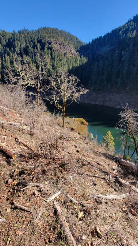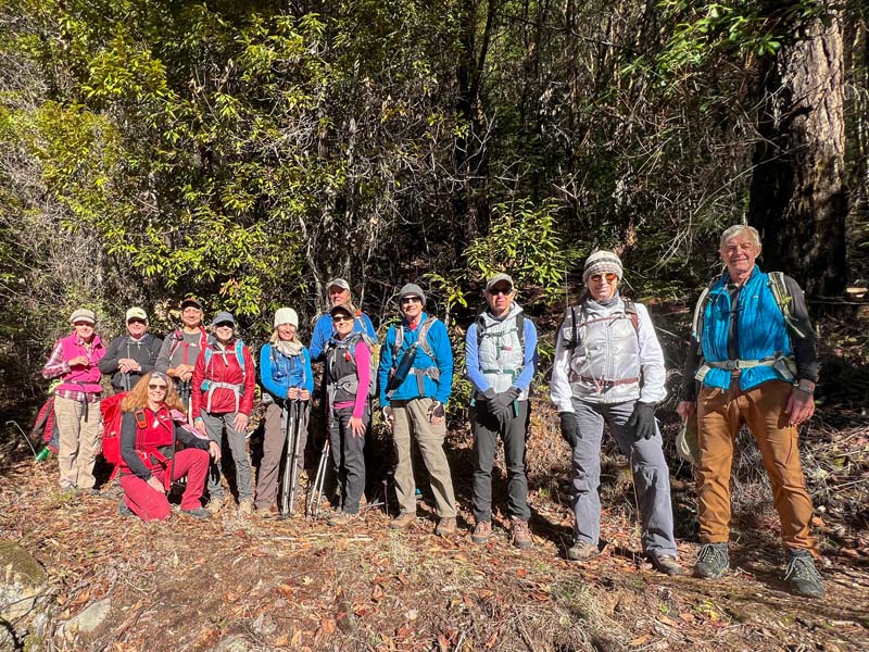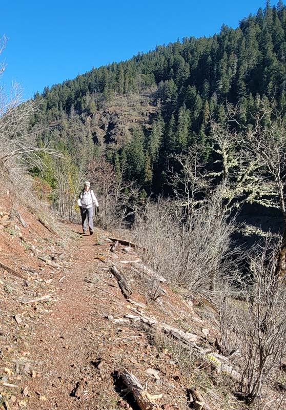 Twelve of us converged at the trail head and headed northeast up the Rogue River under clear skies and a very cold breeze. The trail at the beginning was in good shape but some of us were worried that all the downfall we had experienced last year might not have been cleared.