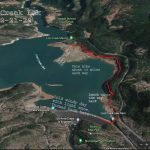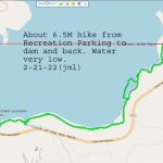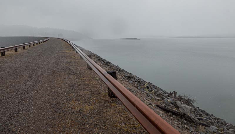 Along the way we saw: a rock sculpture which to some “looks like a duck”; Rumley Falls at the 4th bridge crossing; evidence of drought with wide expanses of dry land heading down to the lake; and, of course, the 1.25 mile long William Jess Dam taking a break during drought as the waterline was below the dam.