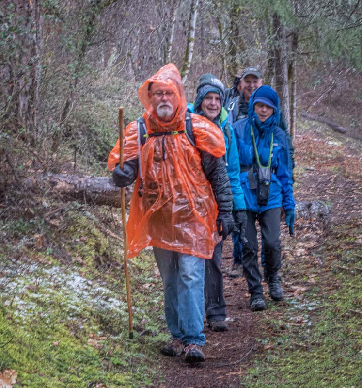 On the way back, I broke out my BiMart orange poncho to the delight of our group!