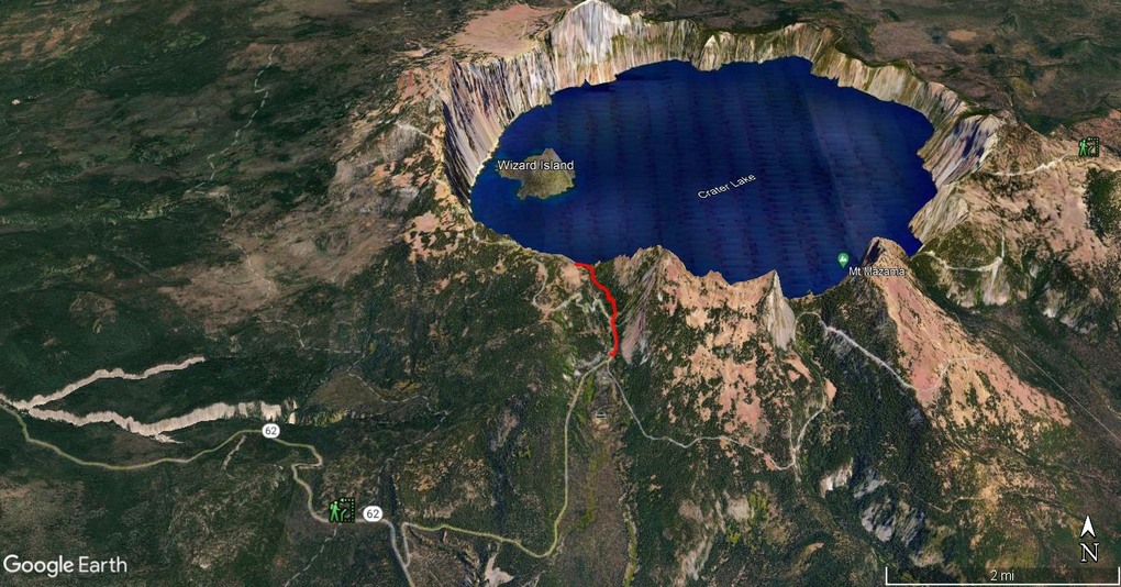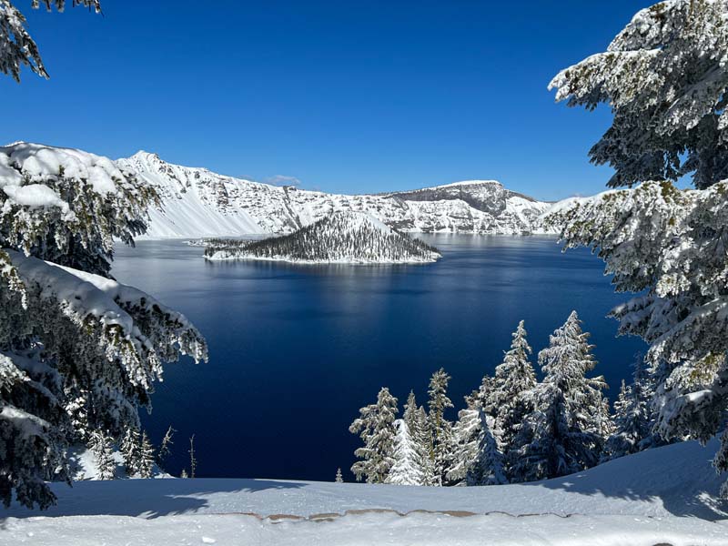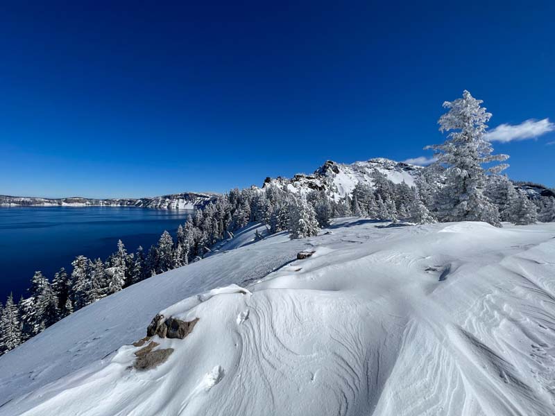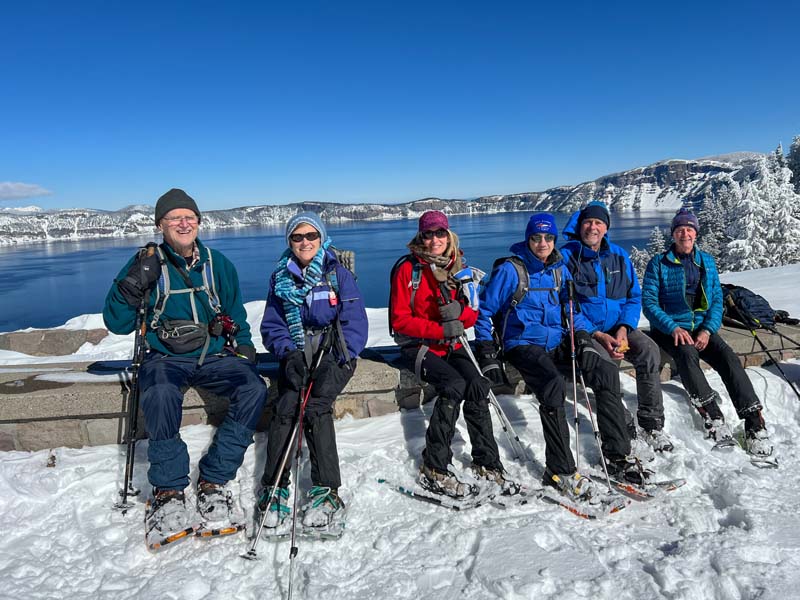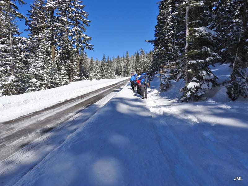 Six of us headed north to hike from Crater Lake’s lower Visitor’s Center up to the rim on a trail known as the Raven Trail. When we left Ashland it was -5 degrees at the Visitor’s Center, so there was much discussion about how to deal with the cold weather. I keep forgetting that the weather forecasts are predicting the worst possible outcomes but they almost never happen. We arrived to 13 degree weather, sunny skies and no wind.
