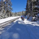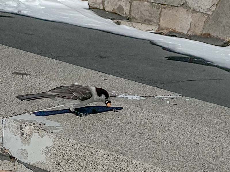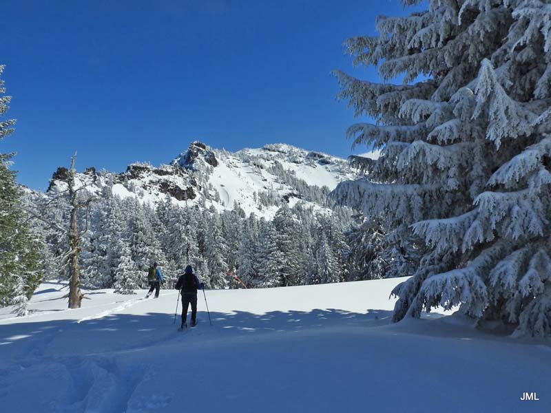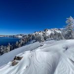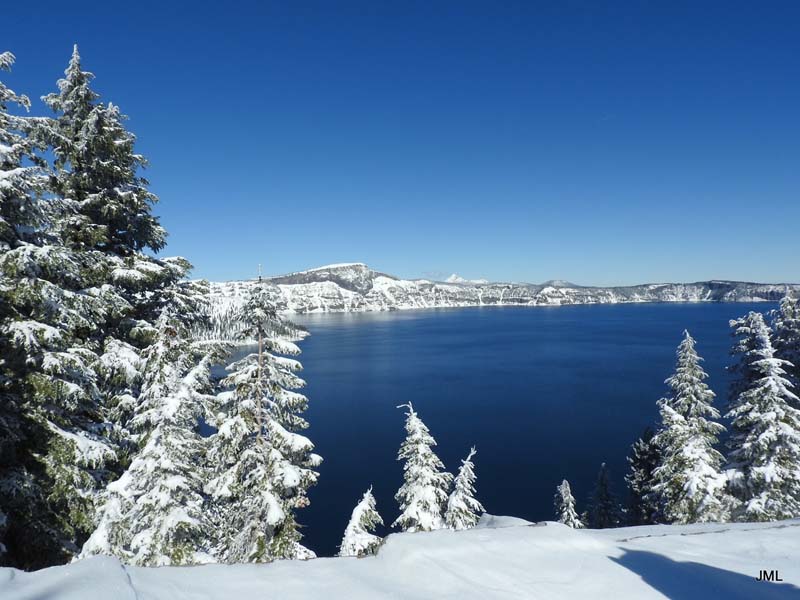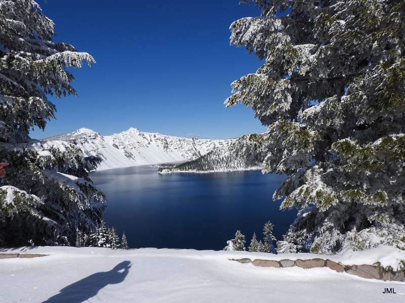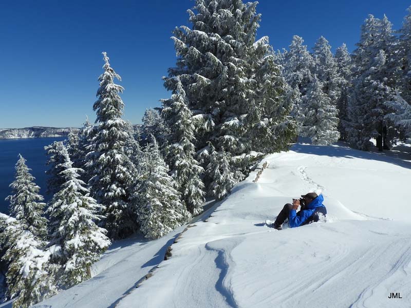 There was not nearly as much snow as we have seen in past hikes, however we did have 10 inches of new snow on the trail. The hiking conditions were perfect. As we neared the rim the lake views were just incredible. We took our time taking pictures and absorbing the views. Then we headed to the lodge area to find a fully protected lunch spot where the temperature seemed closer to 40 than the expected high temperature of 24 degrees. A couple of Canada Jays and a Raven joined us at the end to complete the entertainment.