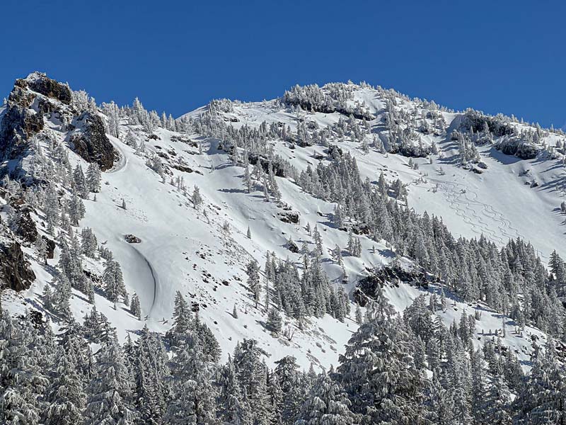 We noticed that 6 people had hiked up the backside of Mt. Garfield and then skied down the face, making perfect “S” curves in the powder (check out the picture). We ran into them at the bottom and all seemed very happy with their adventure.