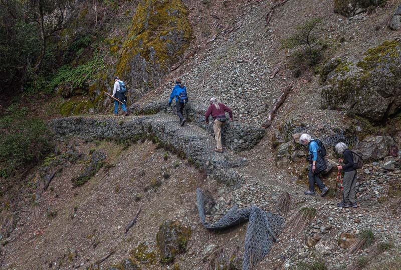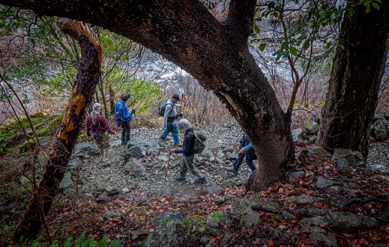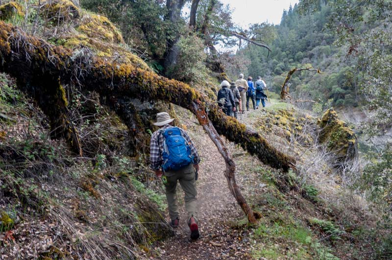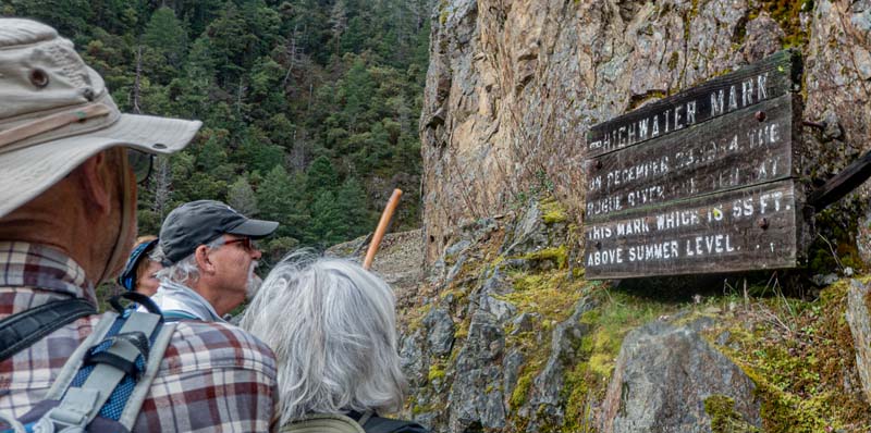 In our group of 8 we had 3 who were new to this hike, so we decided to cross the bridge at Whiskey Creek and visit the historic “Whisky Cabin” for lunch. Gold miner/hermit Lou Martin resided there in the 50s, 60s and into the 70s.