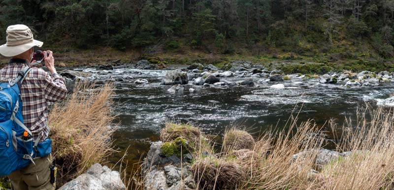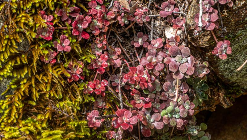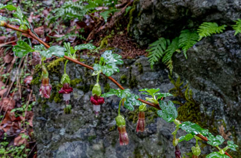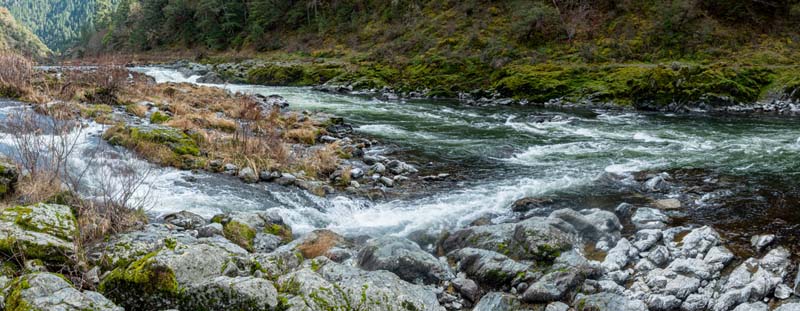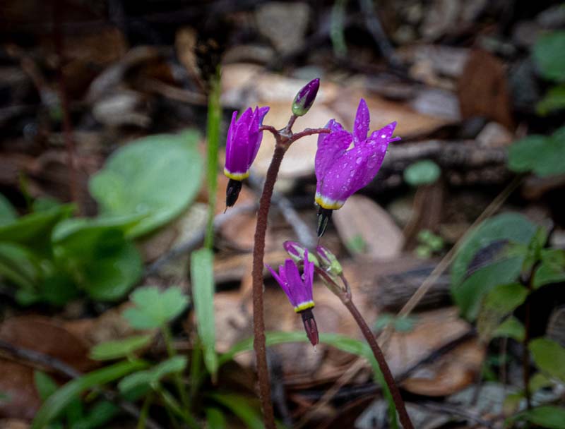 Spring color was immediately apparent as we climbed the canyon wall for better views of the Rogue. Little yellow flowers (Saxifrage?) lined the beginning of the river trail. Other colors along the trail included pinks and whites reaching for the sun and green from moss and ferns in the shaded sections. There were brief sightings of Henderson’s purple Shooting Star, red fuschia-like Gooseberry, and pink Sedum clinging to the wall. From the flower sightings it was clear that Spring had returned to the Lower Rogue.
