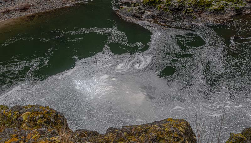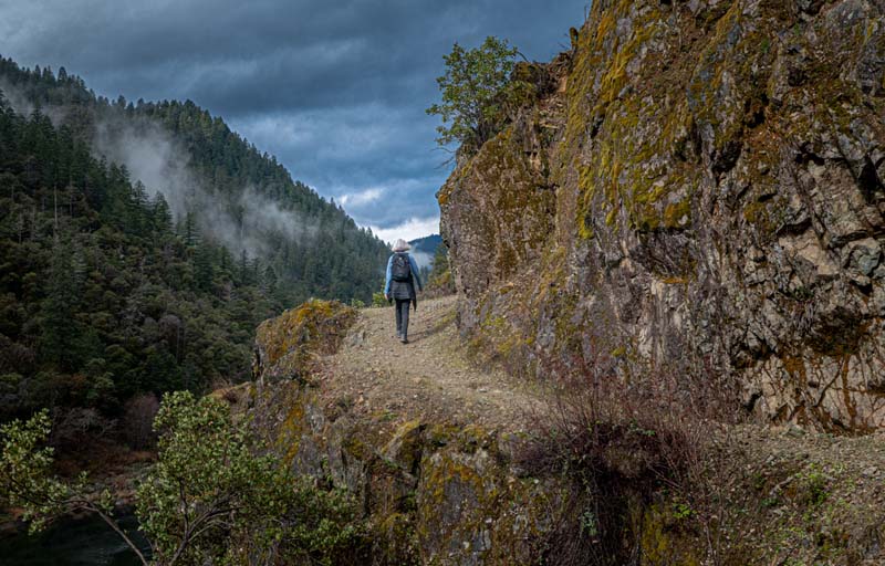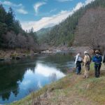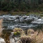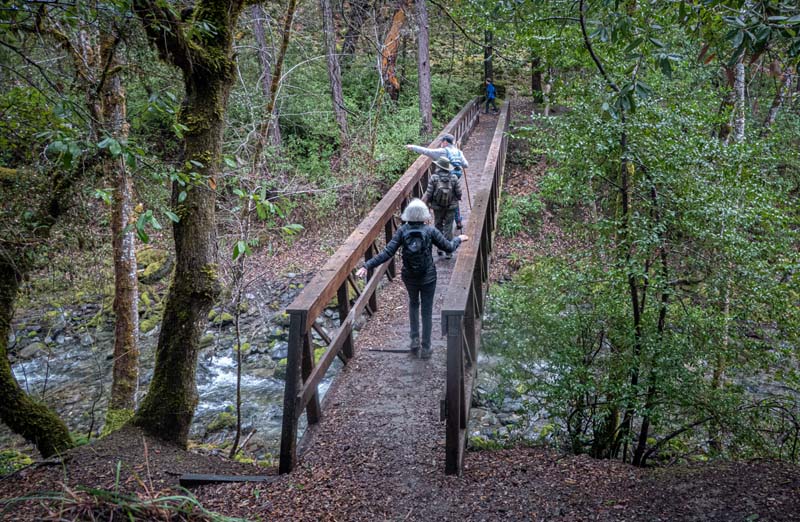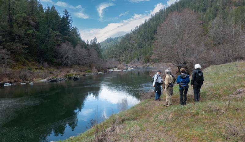 This time of year you wonder if the day will give you late Winter or early Spring. Although a few drops hit the windshield on the drive from Merlin, the wet stuff stopped by the time we gathered at Grave Creek to start our 10 AM hike down the river. Patches of blue broke through the clouds and we had a calm day in the 50s and 60s to explore the trail.