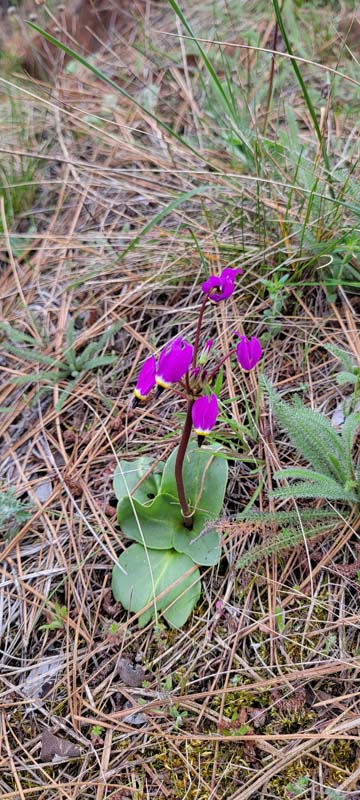As we hiked up we were met by a bunch of Robins that were chirping and flying all around in the madrone trees. We also saw some wildflowers. Henderson’s Shooting Stars and Grass Widow, Slender Toothwart (I believe) and a few others.