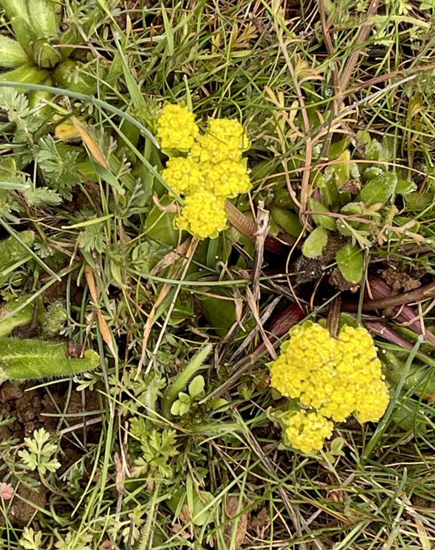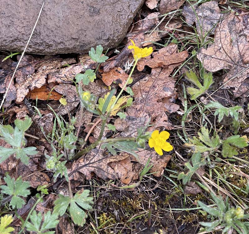 Wildflowers are just starting to sprout. We found Western Buttercup and Desert Parsley (Lomatium utriculatum). Lots of conversations enjoyed while eating lunch at our favorite spot, exposed to the elements as the hail descended in earnest, just as the forecasted for noontime.