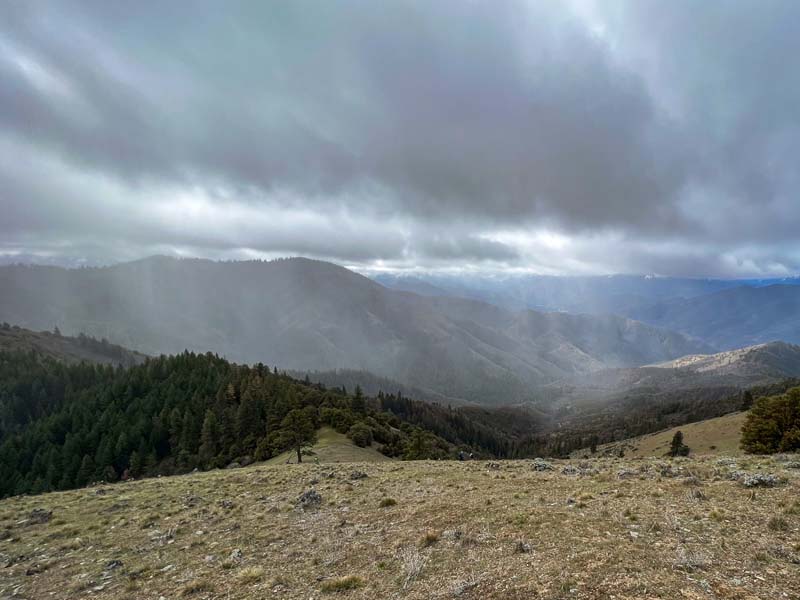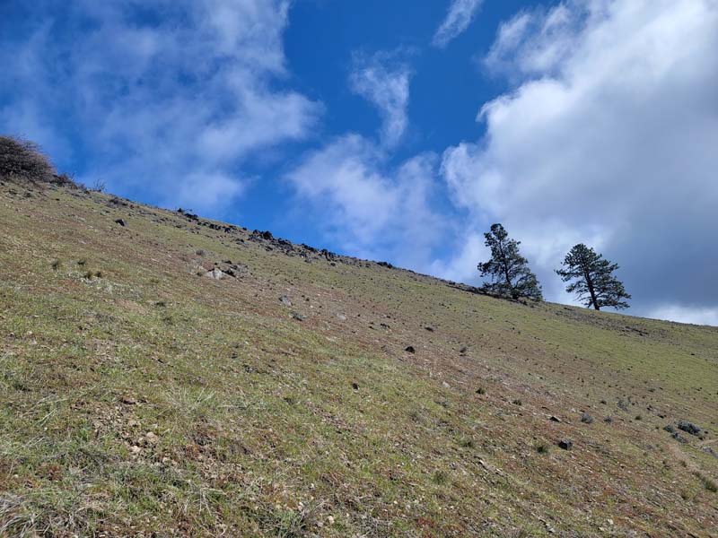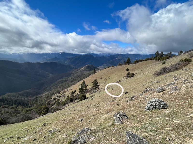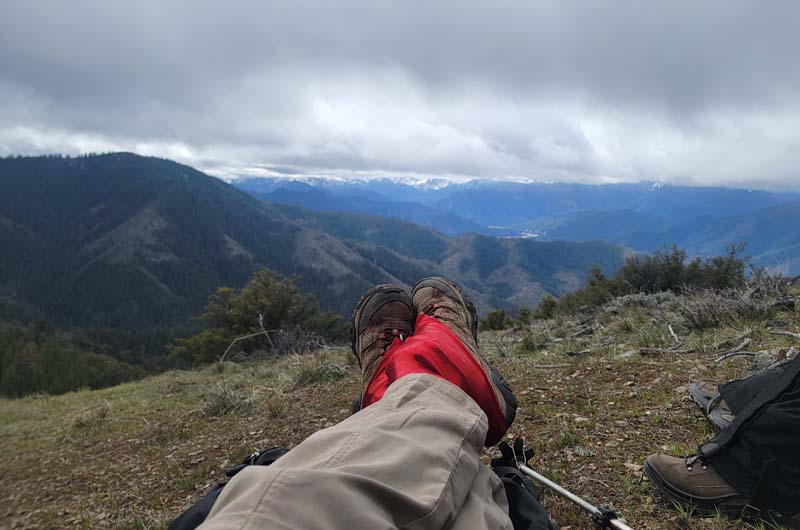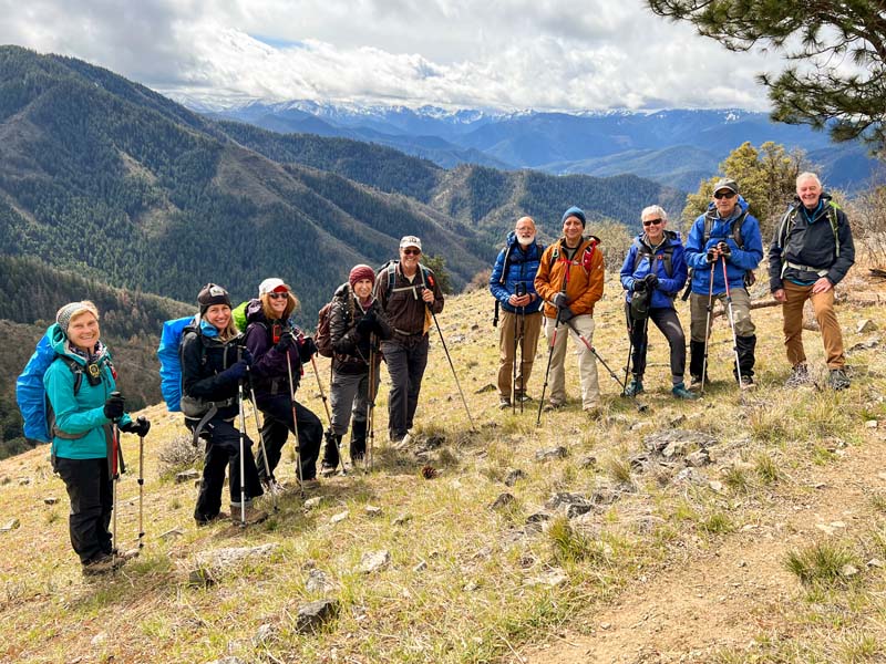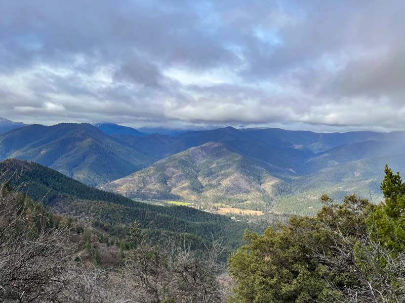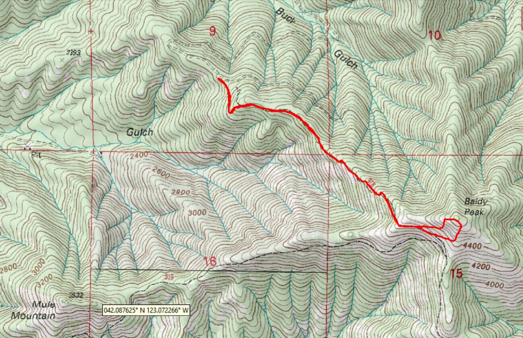 Ten of us headed out to the Applegate for hiking to the top of Baldy Peak. This is a short but very steep hike, climbing almost 1,600 feet in about 1.6 miles. Besides being steep, the trail was in good condition until we hit the last pitch up to the summit, where there is no trail. We basically scrambled up a 45 degree slope while going north and up about 500 feet. Once on top the views were good, but somewhat limited by the clouds.