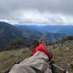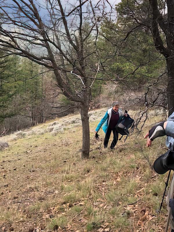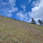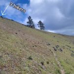 We took several “view” breaks on the way up. At one point someone’s pack started rolling down the hill but thanks to Nanci’s fast reaction, it was stopped before going the rest of the way to the bottom. Lunch was enjoyed by all until we noticed a rain storm coming our way, so we packed, covered up and headed back down. However, the rain never arrived. Instead we were treated to blue sky and puffy white clouds.