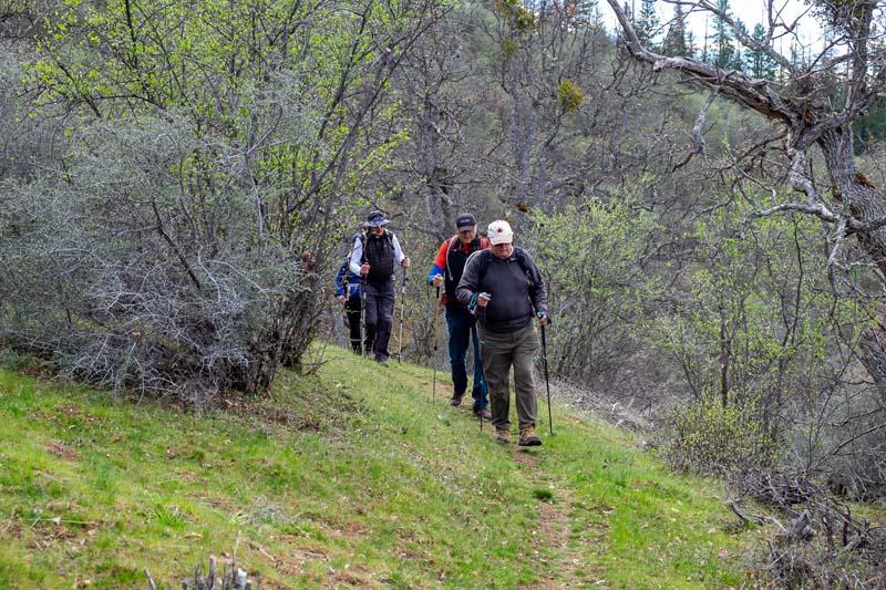 It was a day where delayering was frequent as the weather got better and better. We made a very fast time along Sterling Mine Ditch and reached our lunch spot among the oaks after nearly 3 MPH along the way.