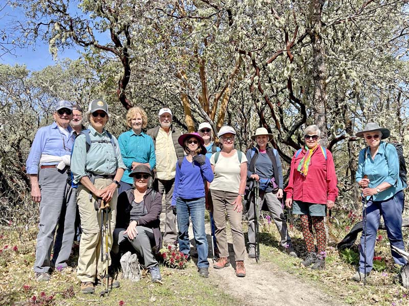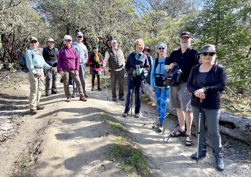 Twelve of us hiked on the Timber Riders, Outback Loop, Hogback and Skycrest Loop trails for almost 5 miles. Dense stands of Indian Warriors and Henderson’s Shooting Stars stretched over the hill slopes especially on the Skycrest Loop trail. We saw the first Fritillary of the season along with fawn lilies, blue hound’s tongue and gold stars. Poison oak is also prevalent, so stay on the trail. We lunched overlooking the valley and Mabre shared poems.
