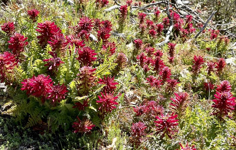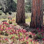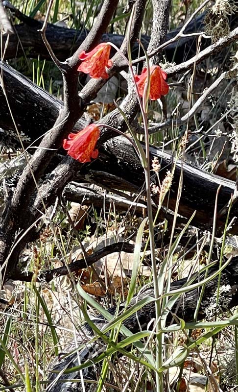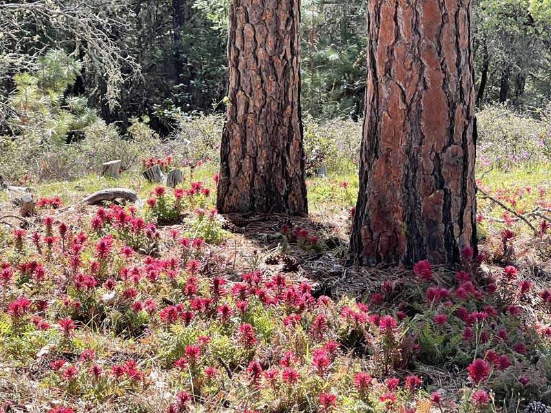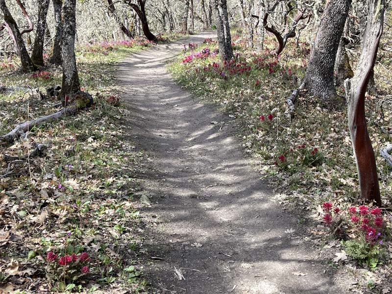 Hundreds of red Indian Warrior wildflowers are blooming at Cathedral Hills near Grants Pass, so a Friday hike to see them was a special treat. We started at the Skycrest trailhead, as the Espey trailhead is closed through March 30 for tree removal and fire protection activity.
