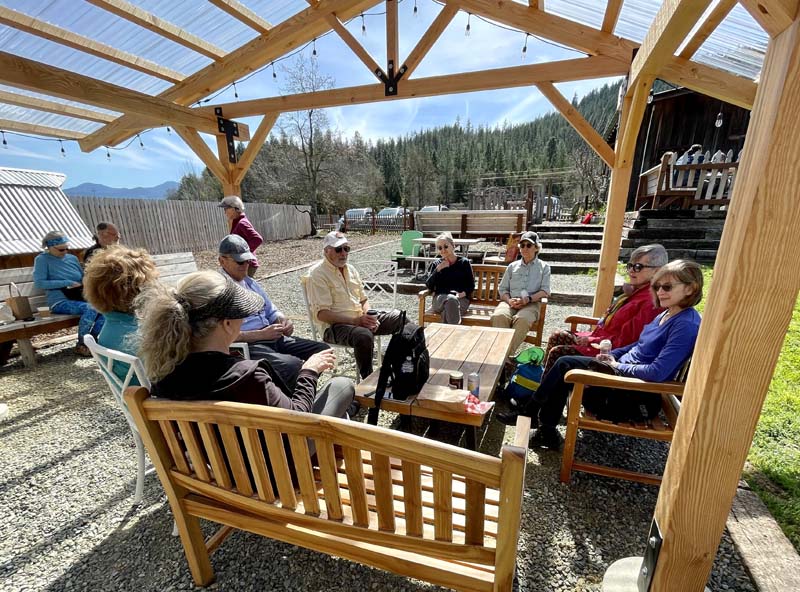 Driving back, we stopped at Pennington Farms on Highway 238 near Murphy. As we grazed on berry pastries in the Pennington garden, the owner stopped by to chat with us. He told us about the blackberry varieties and his own crosses that he grows to produce their unique berry jams (i.e.,tayberry, mungaberry, marionberry). All of us agreed that it was a most colorful day on the hiking trail.