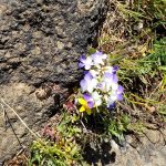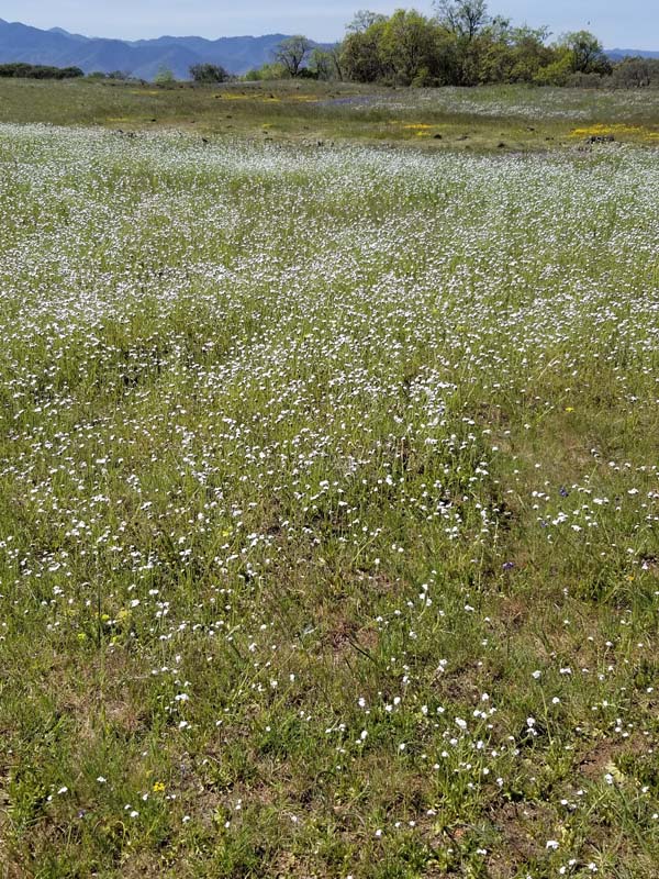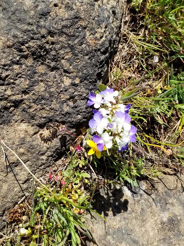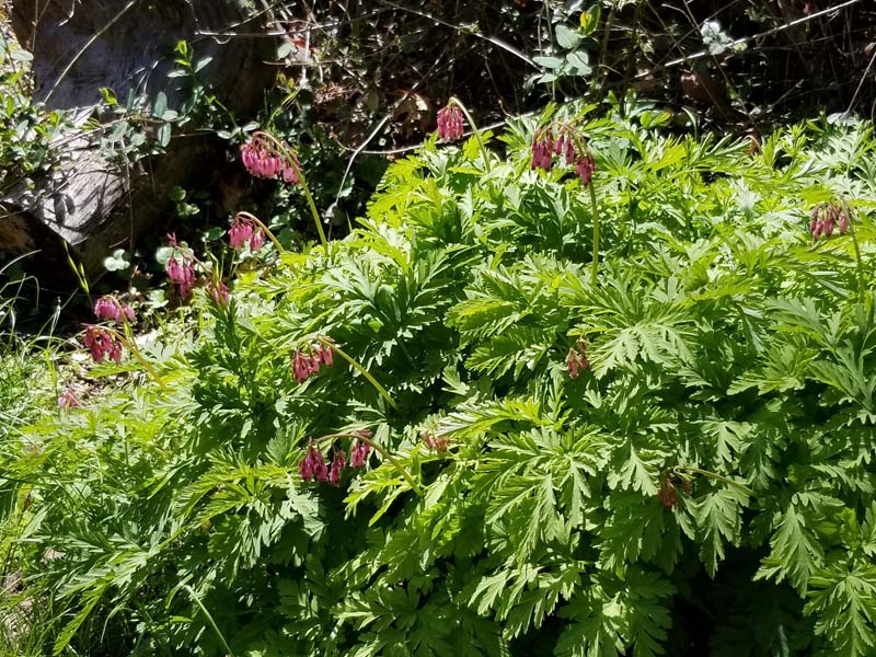 Up on top, we saw patches of pink, yellow, purple, gold, and blue & white from rosy plectritis, buttercups, larkspur, gold field, and blue-eyed Mary (shirts & shirts). Many more flowers adorned the trail below including increasing shrubs of Bleeding Hearts in the turn in the trail before the final push to the top.