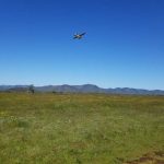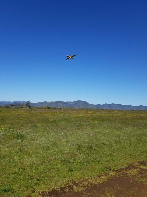 A bright yellow, single engine plane flew overhead and swooped down as if to land on the WWII landing strip twice!