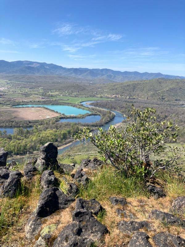 We had lunch overlooking the Rogue and green valley below after we took an old trail to the right through the Buckbrush and out to a rocky point.