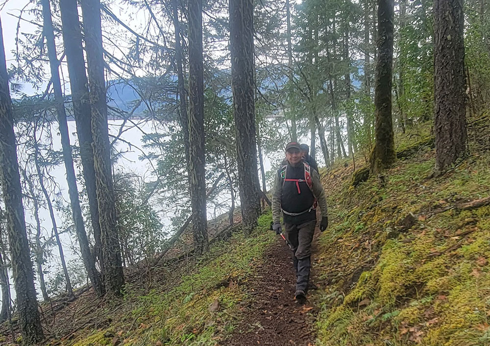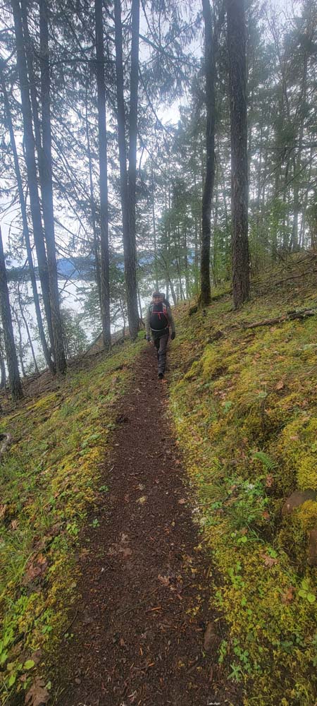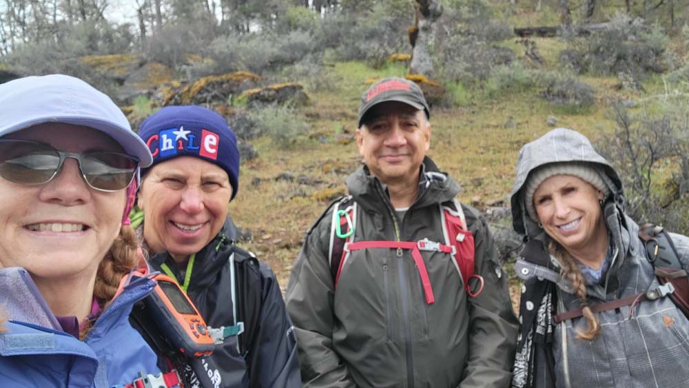 With a mile to go to reach our lunch spot, the rain started picking up so we put our covers on our packs. Shortly after, the rain stopped. We all agreed that if we based our hikes on the weather forecast, we may not get out nearly as much.