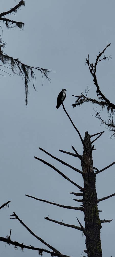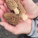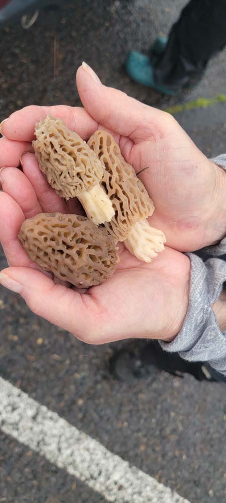 On the way back we saw a pair of Osprey perched on top of trees. We were hoping to see one dive for a fish but were happy to see them fly around the water. Sherry noticed some morel mushroom and was able to pick a good size handful. One of the pictures shows a few of them. Shortly after we got back in the car, it started to pour down rain. Once again our timing was excellent.