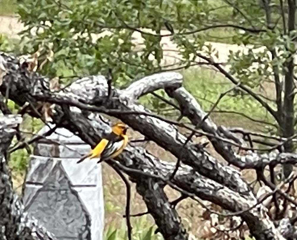 The birders in the group were very excited to spot four squabbling Bullock’s orioles along with rock wrens, yellow warblers, oak titmouses.