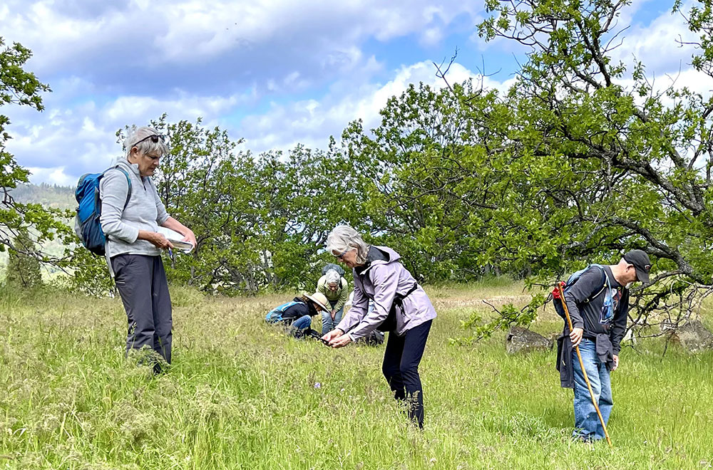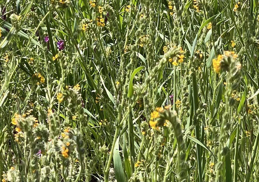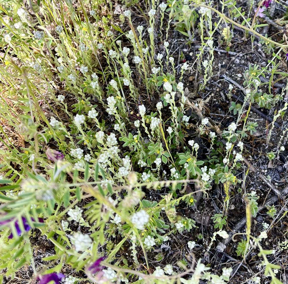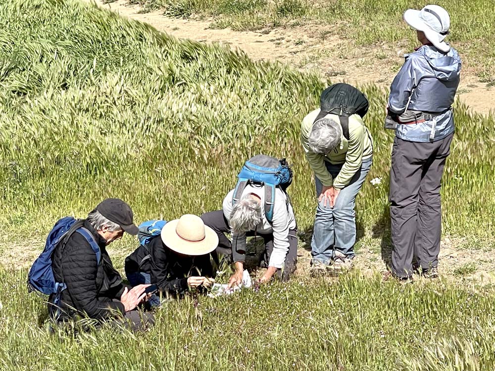 he weather gods were very kind to us as we ventured out to Emmigrant Lake on Friday. Parking at the main dam parking lot, we crossed the dam and took the left path towards the lake. Along the grassy knoll slope, we were rewarded with lots of wildflowers — with plenty sneaky ones to keep us all busy as you can see by Kay’s great photos. We ended up for a short chocolate and birding break at the cemetery before heading back to the cars just ahead of the rain showers.