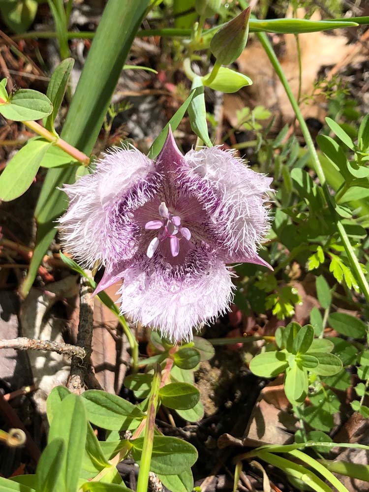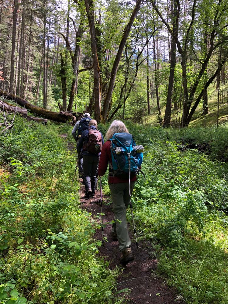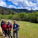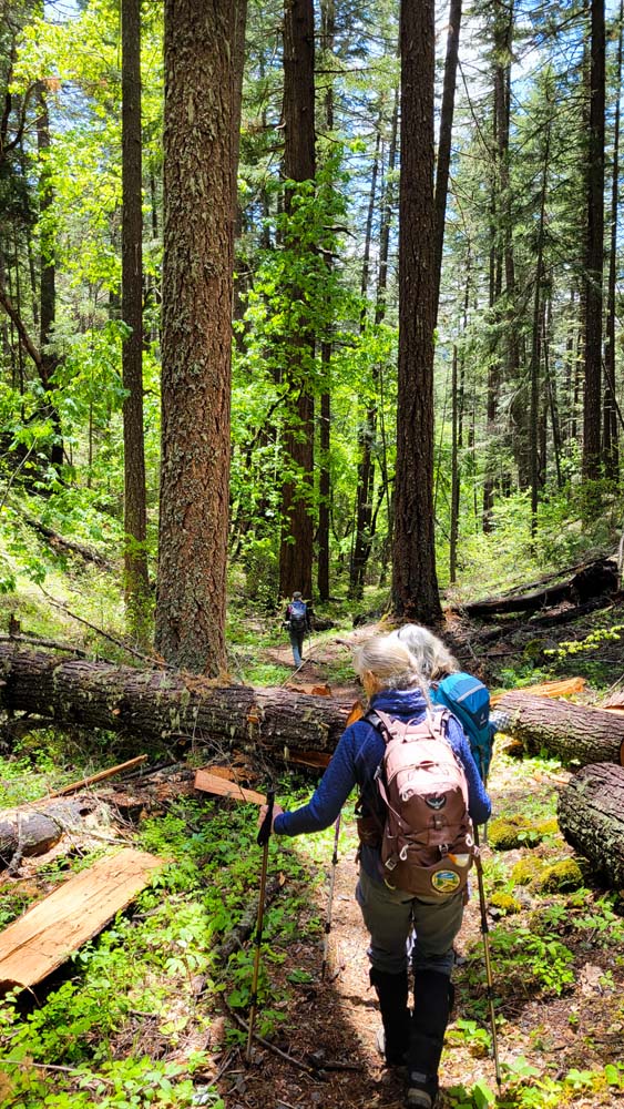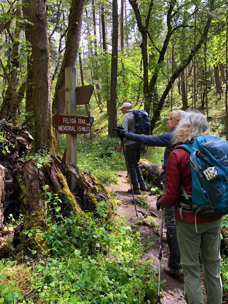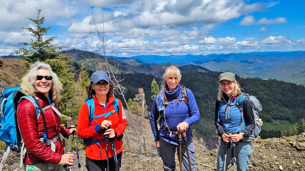 But then there was yesterday’s hike which seemed to have a conjunction of external events that just seemed to come together perfectly. Five of us set out on this misty morning into the valley of the Applegate and up past one of my favorite vineyards to the trailhead. By the time we started the hike patches of blue were breaking the overcast grays and suggesting the possibility of a bright sunlit day. I, following Keeley’s habit tried to suggest that we should hike fairly directly to our lunch stop at the top saddle, and then take a more leisurely pace back checking out the flowers and sights. I suggested that the weather radar(gods) indicated the likelihood of rain moving in around two in the afternoon.