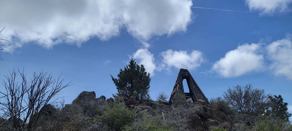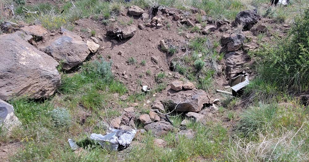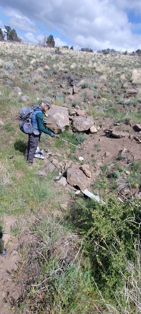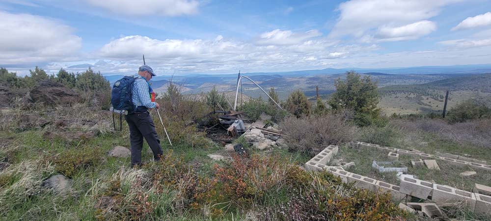 When we were getting closer to to bottom of the trail where it connects to the road, I decided we needed to stop and gather together. Ki came up behind me and then spotted the remains of a plane crash. I think we were all looking at how steep the trail was and had missed it on the way up. As per Wikipedia: West Coast Airlines Flight 720 was a scheduled passenger flight in the northwest United States from Klamath Falls, Oregon to Seattle, Washington, with intermediate stops at Medford, Eugene and Portland, Oregon. On March 10, 1967, it crashed shortly after takeoff from Klamath Falls, killing all three crew members and the flight’s lone passenger.