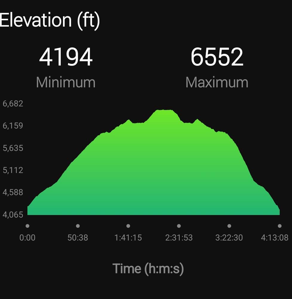 The temperature was in the upper 50s and perfect for our 1 mile walk up the dirt road. We had to stop to adjust our layers in no time at all. The hike mileage was 7.1 miles with an elevation gain of almost 2,500 feet.