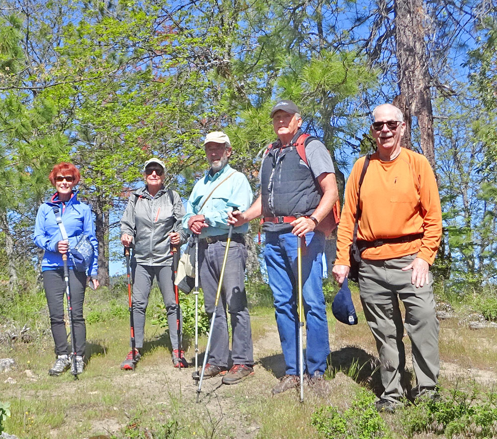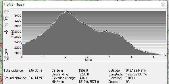 The hike starts off easily enough, paralleling Hamilton Creek for around 1/2 mile before starting the climb of 1,000′ or so to the high point in another 1.5 miles. There was some grumbling in the ranks until the substitute leader agreed to add some “stop to smell the roses rest stops”. From the high point we had nice views to the south of the Tolman Creek Drainage and Mt. Ashland and to the southeast out to a piddling Emigrant Lake. As we headed back down to town on Red Queen we could see the still snow covered Wagner Butte.