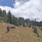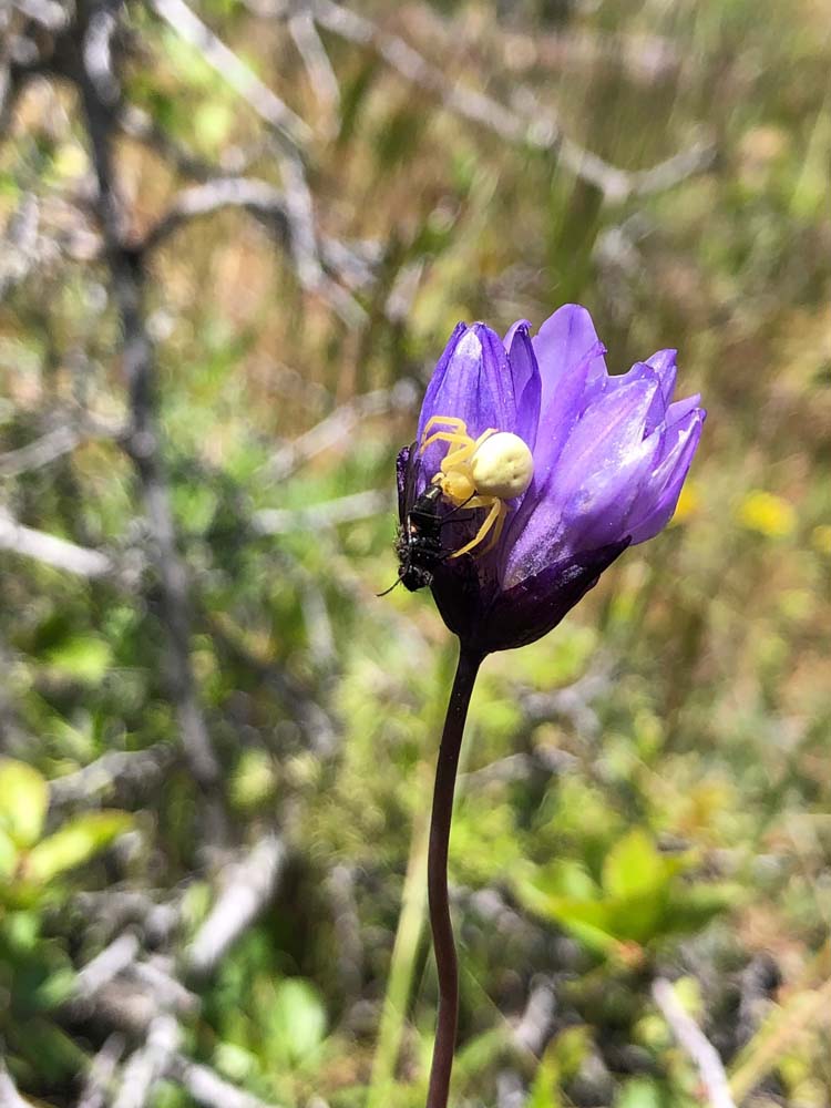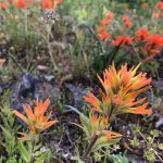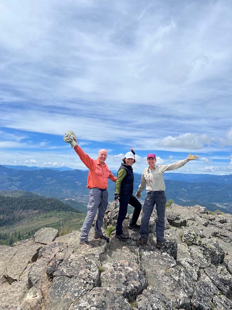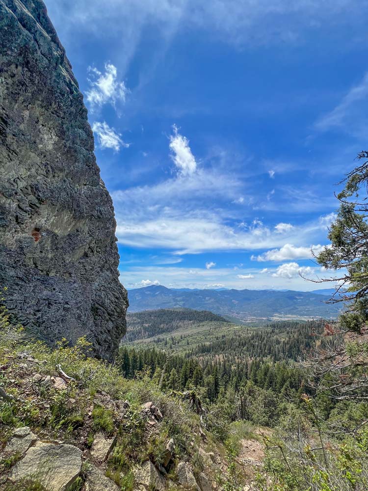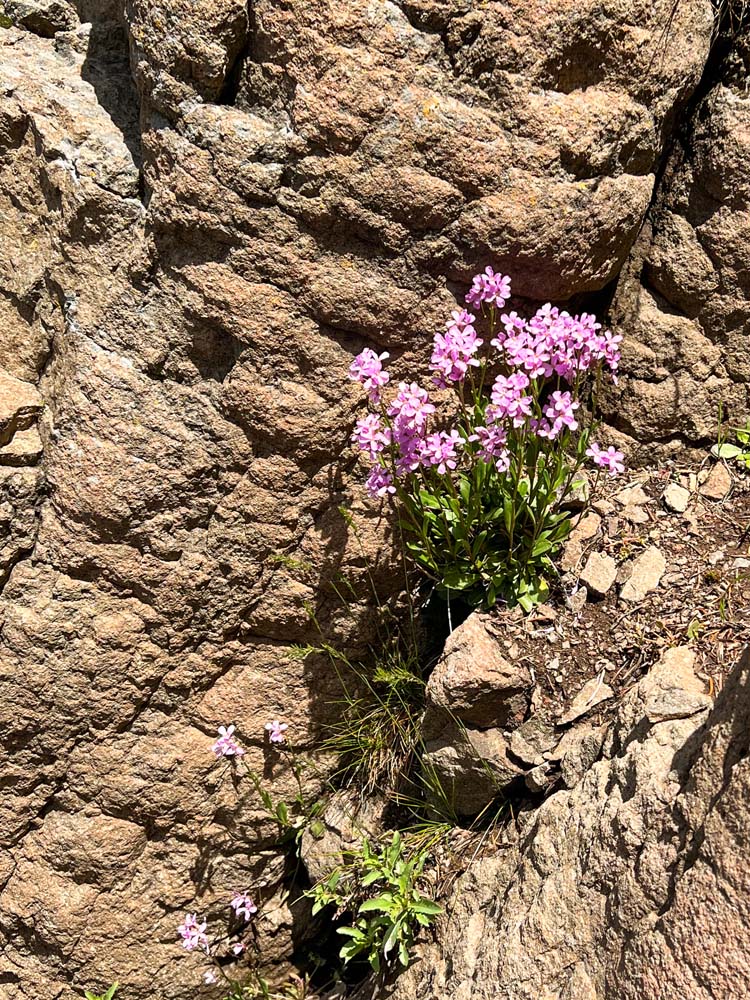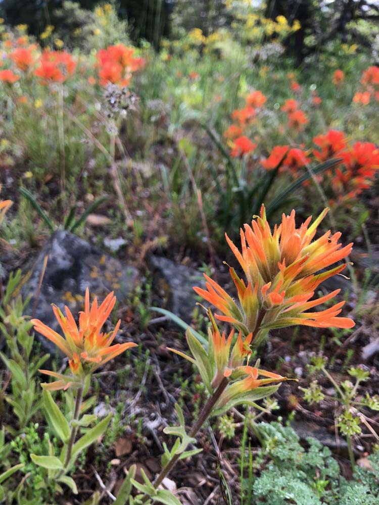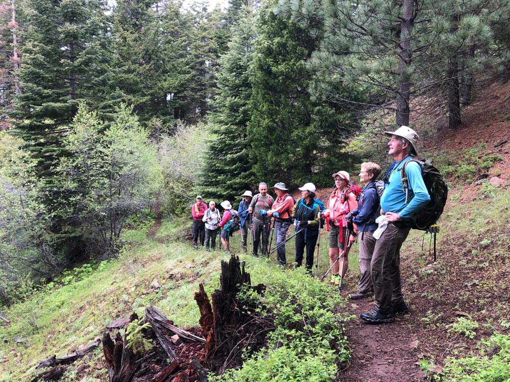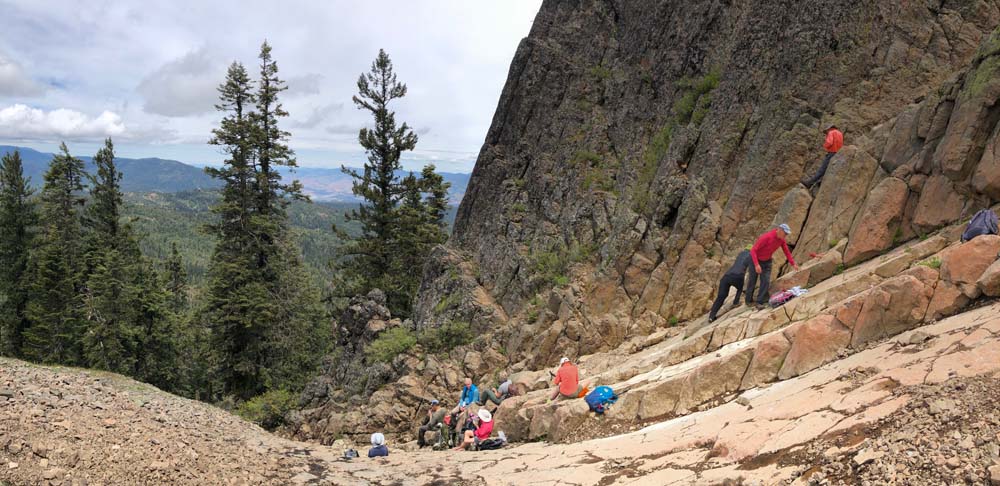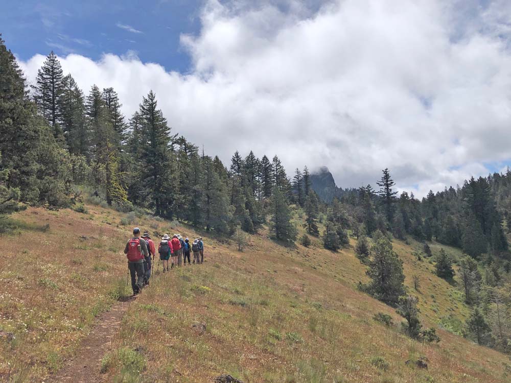 Eleven of us headed south to climb up to Pilot Rock. The sky was overcast and it had rained a bit the night before, so many of us in the front of the line got very wet from water still on the plants that had grown over the trail. The flowers were plentiful and diverse, so we all were being educated about the different flowers.
